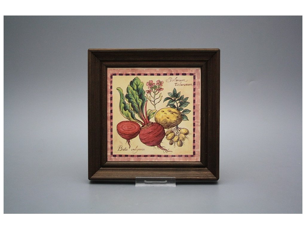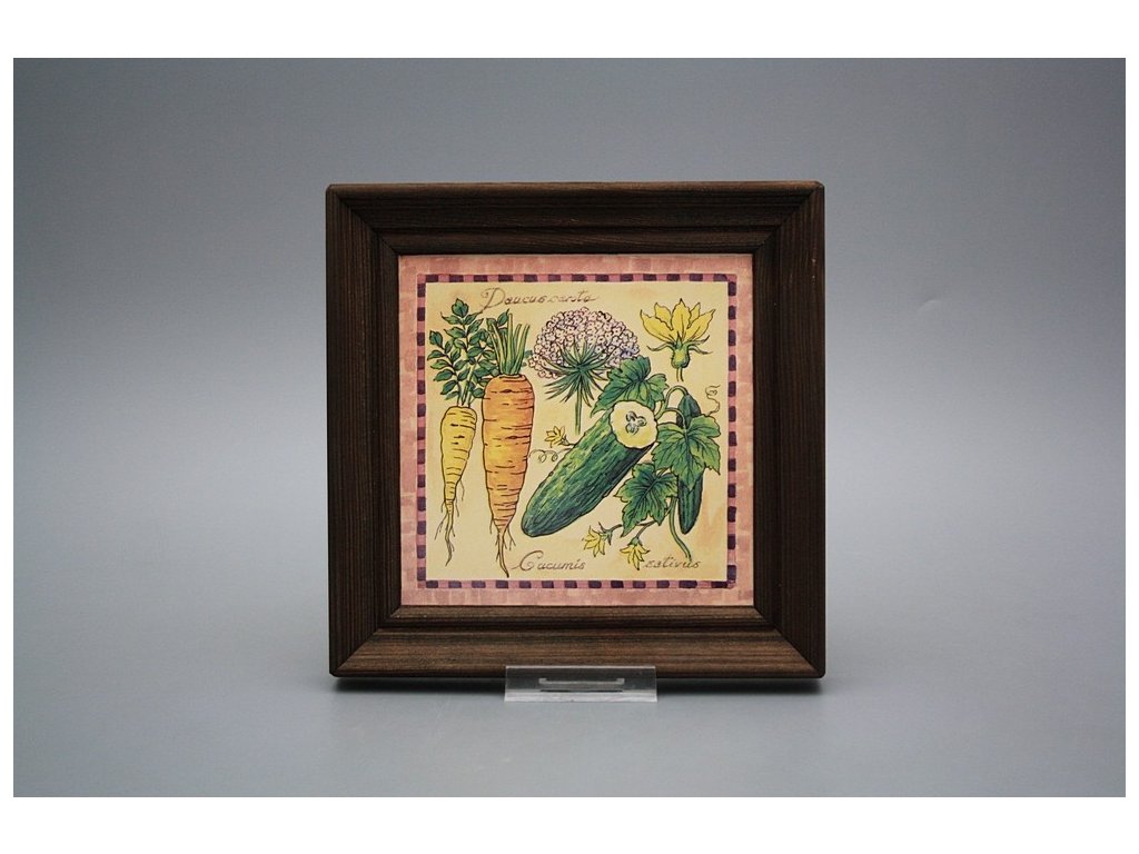 Keramisches Bild zum Aufhängen mit Holzrahmen, Temperatur beim Ausbrennen des Motivs in Höhe von 820°C, abriebfestes, waschbares Dekor.