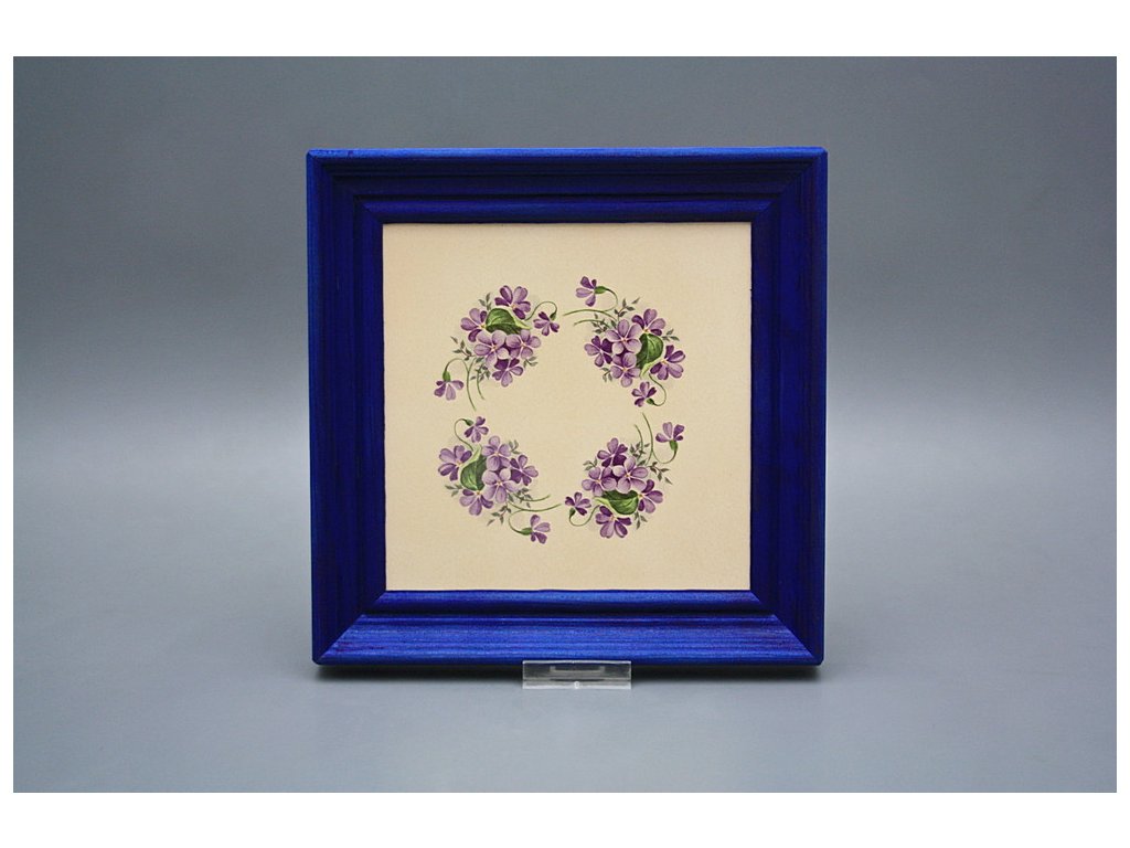 Keramisches Bild zum Aufhängen mit Holzrahmen, Temperatur beim Ausbrennen des Motivs in Höhe von 820°C, abriebfestes, waschbares Dekor.