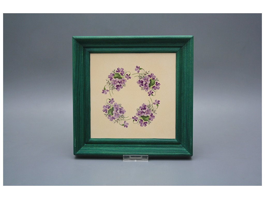 Keramisches Bild zum Aufhängen mit Holzrahmen, Temperatur beim Ausbrennen des Motivs in Höhe von 820°C, abriebfestes, waschbares Dekor.