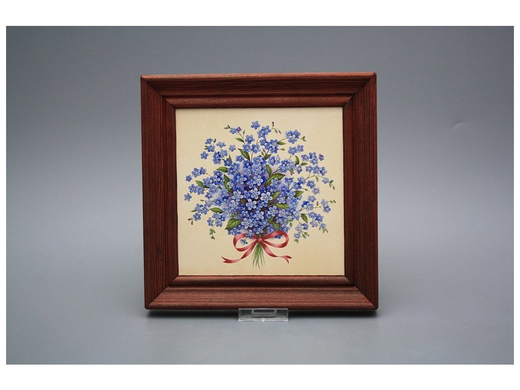 Keramisches Bild zum Aufhängen mit Holzrahmen, Temperatur beim Ausbrennen des Motivs in Höhe von 820°C, abriebfestes, waschbares Dekor.