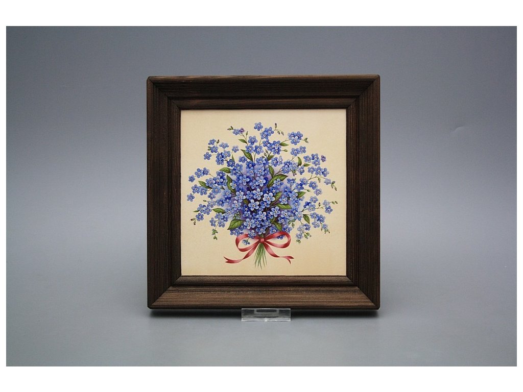 Keramisches Bild zum Aufhängen mit Holzrahmen, Temperatur beim Ausbrennen des Motivs in Höhe von 820°C, abriebfestes, waschbares Dekor.