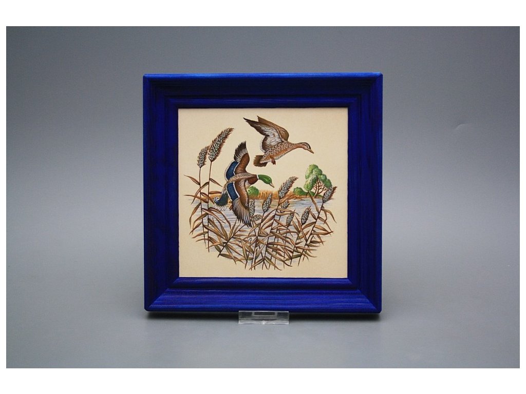 Keramisches Bild zum Aufhängen mit Holzrahmen, Temperatur beim Ausbrennen des Motivs in Höhe von 820°C, abriebfestes, waschbares Dekor.
