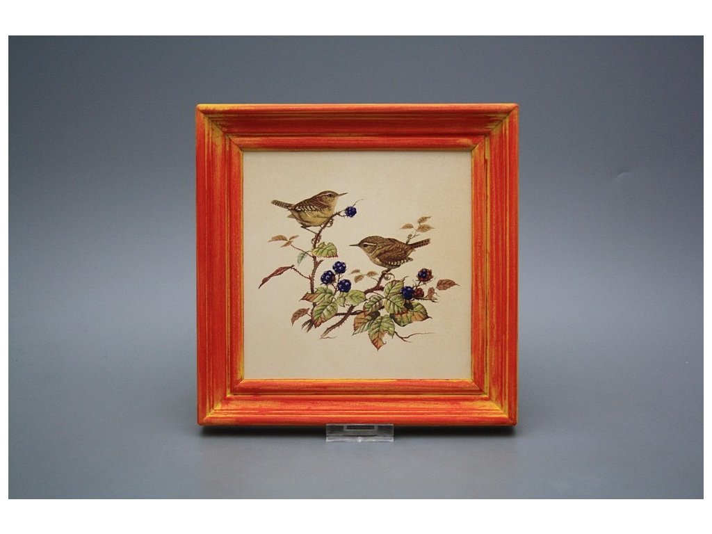 Keramisches Bild zum Aufhängen mit Holzrahmen, Temperatur beim Ausbrennen des Motivs in Höhe von 820°C, abriebfestes, waschbares Dekor.