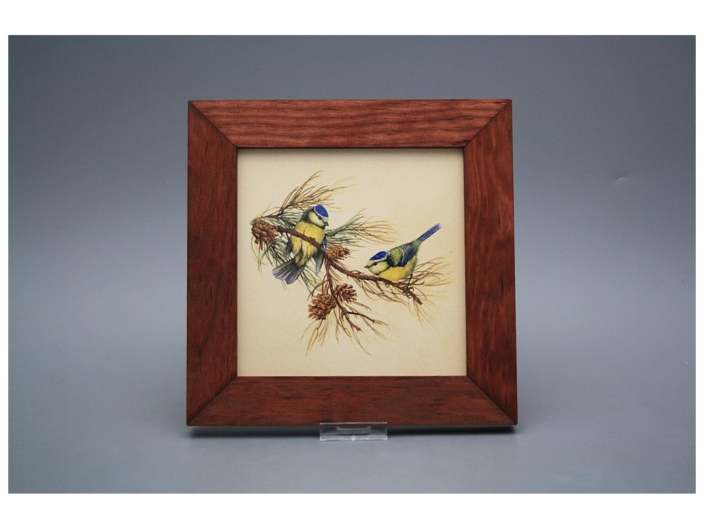 Keramisches Bild zum Aufhängen mit Holzrahmen, Temperatur beim Ausbrennen des Motivs in Höhe von 820°C, abriebfestes, waschbares Dekor.