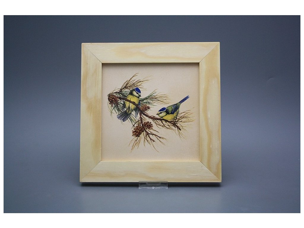 Keramisches Bild zum Aufhängen mit Holzrahmen, Temperatur beim Ausbrennen des Motivs in Höhe von 820°C, abriebfestes, waschbares Dekor.