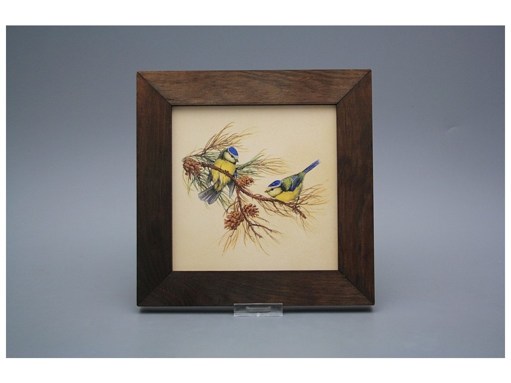 Keramisches Bild zum Aufhängen mit Holzrahmen, Temperatur beim Ausbrennen des Motivs in Höhe von 820°C, abriebfestes, waschbares Dekor.