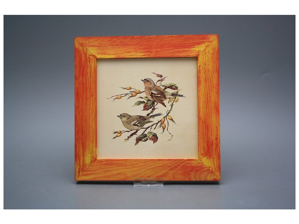 Keramisches Bild zum Aufhängen mit Holzrahmen, Temperatur beim Ausbrennen des Motivs in Höhe von 820°C, abriebfestes, waschbares Dekor.