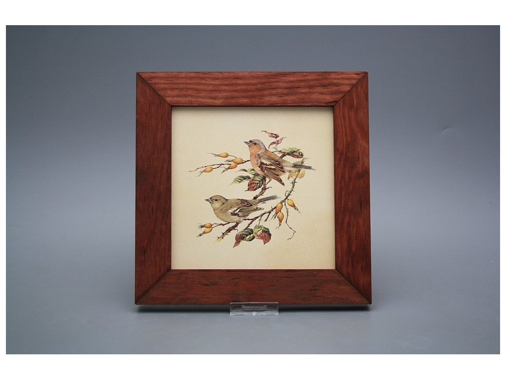 Keramisches Bild zum Aufhängen mit Holzrahmen, Temperatur beim Ausbrennen des Motivs in Höhe von 820°C, abriebfestes, waschbares Dekor.