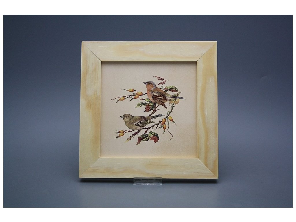 Keramisches Bild zum Aufhängen mit Holzrahmen, Temperatur beim Ausbrennen des Motivs in Höhe von 820°C, abriebfestes, waschbares Dekor.