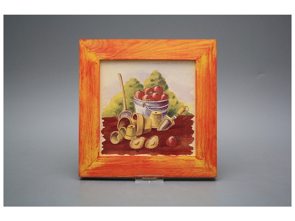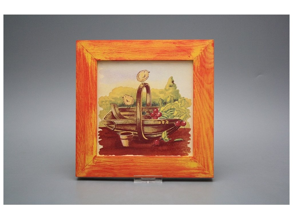 Keramisches Bild zum Aufhängen mit Holzrahmen, Temperatur beim Ausbrennen des Motivs in Höhe von 820°C, abriebfestes, waschbares Dekor.