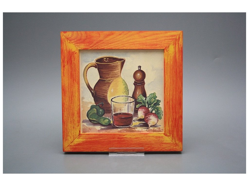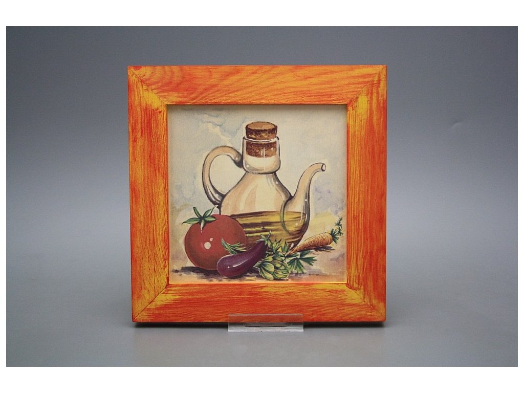 Keramisches Bild zum Aufhängen mit Holzrahmen, Temperatur beim Ausbrennen des Motivs in Höhe von 820°C, abriebfestes, waschbares Dekor.