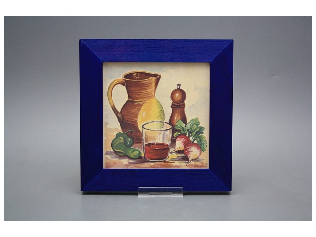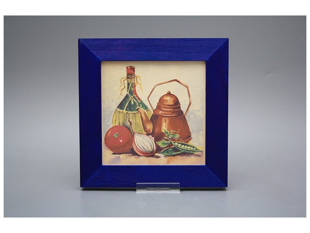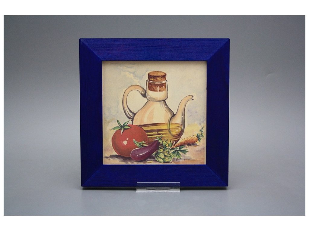 Keramisches Bild zum Aufhängen mit Holzrahmen, Temperatur beim Ausbrennen des Motivs in Höhe von 820°C, abriebfestes, waschbares Dekor.