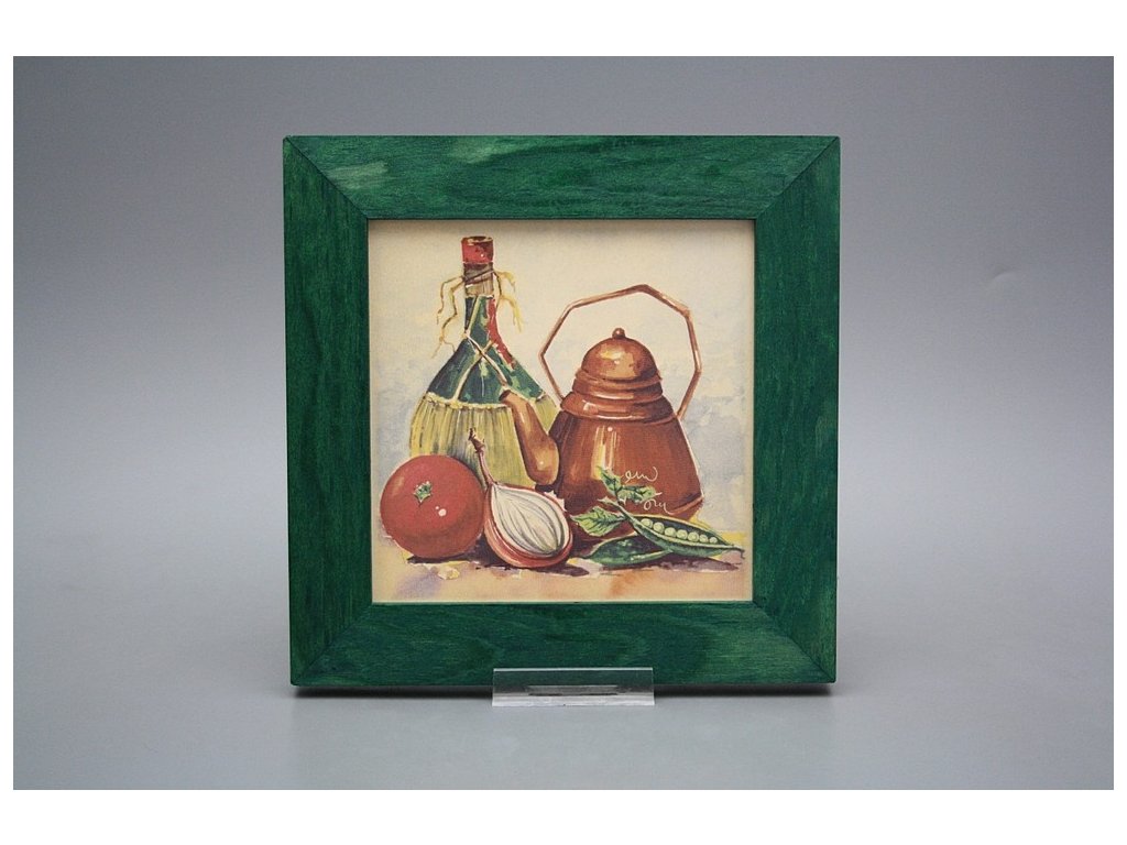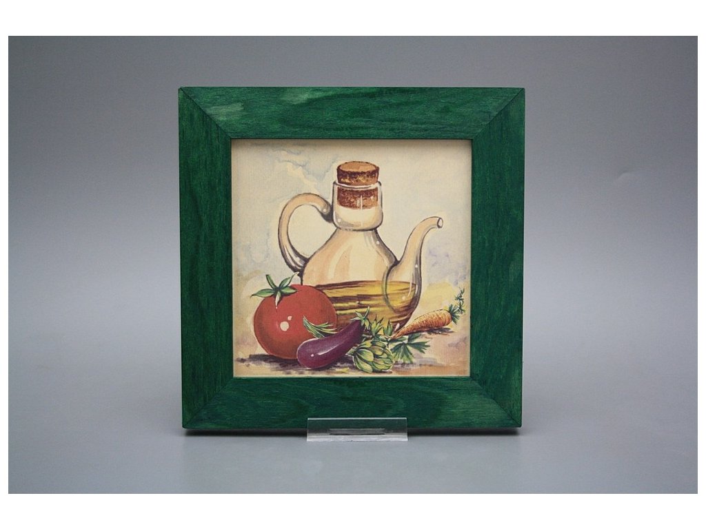 Keramisches Bild zum Aufhängen mit Holzrahmen, Temperatur beim Ausbrennen des Motivs in Höhe von 820°C, abriebfestes, waschbares Dekor.