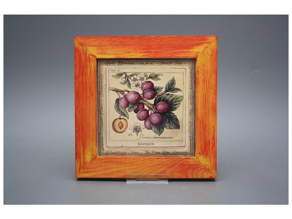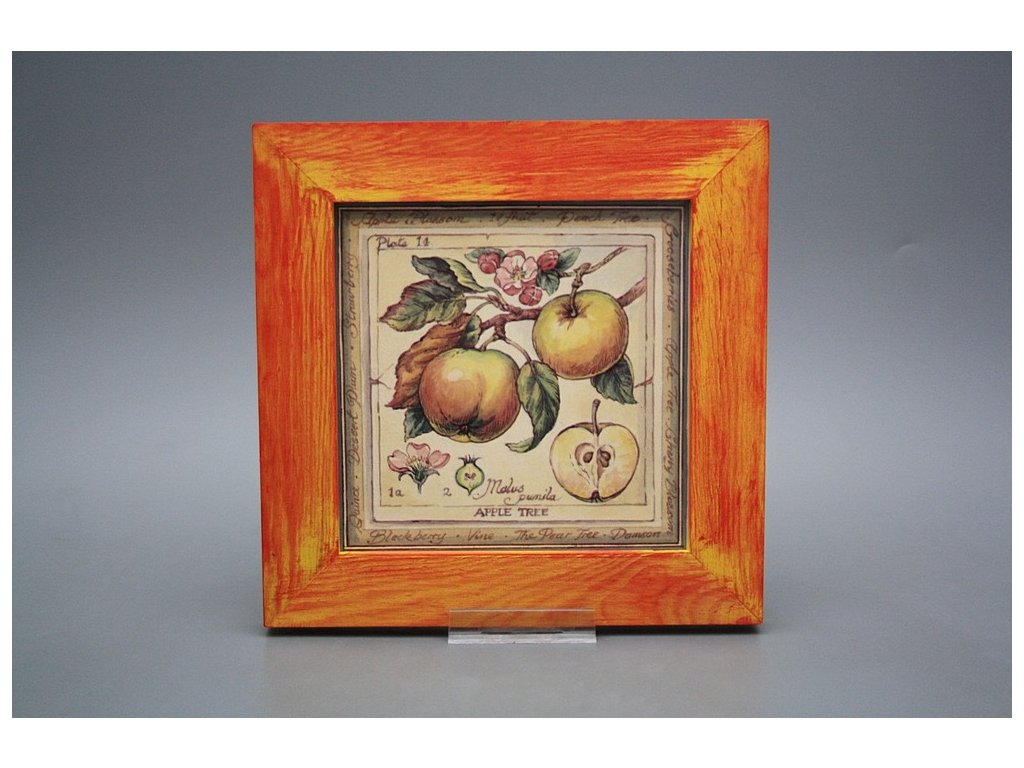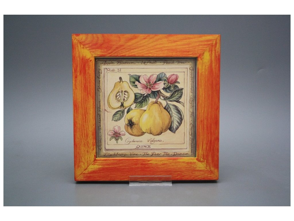Keramisches Bild zum Aufhängen mit Holzrahmen, Temperatur beim Ausbrennen des Motivs in Höhe von 820°C, abriebfestes, waschbares Dekor.