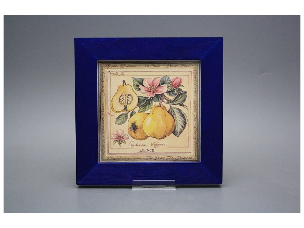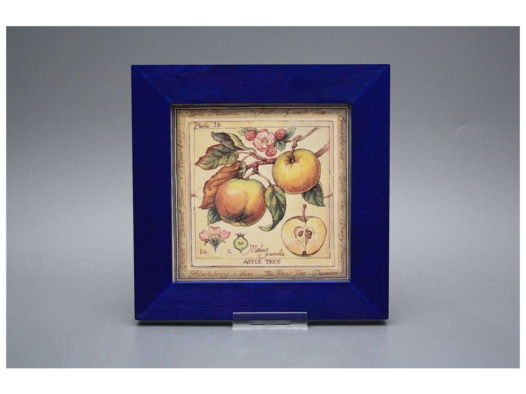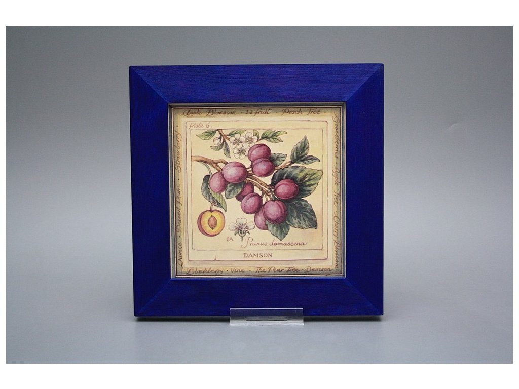 Keramisches Bild zum Aufhängen mit Holzrahmen, Temperatur beim Ausbrennen des Motivs in Höhe von 820°C, abriebfestes, waschbares Dekor.