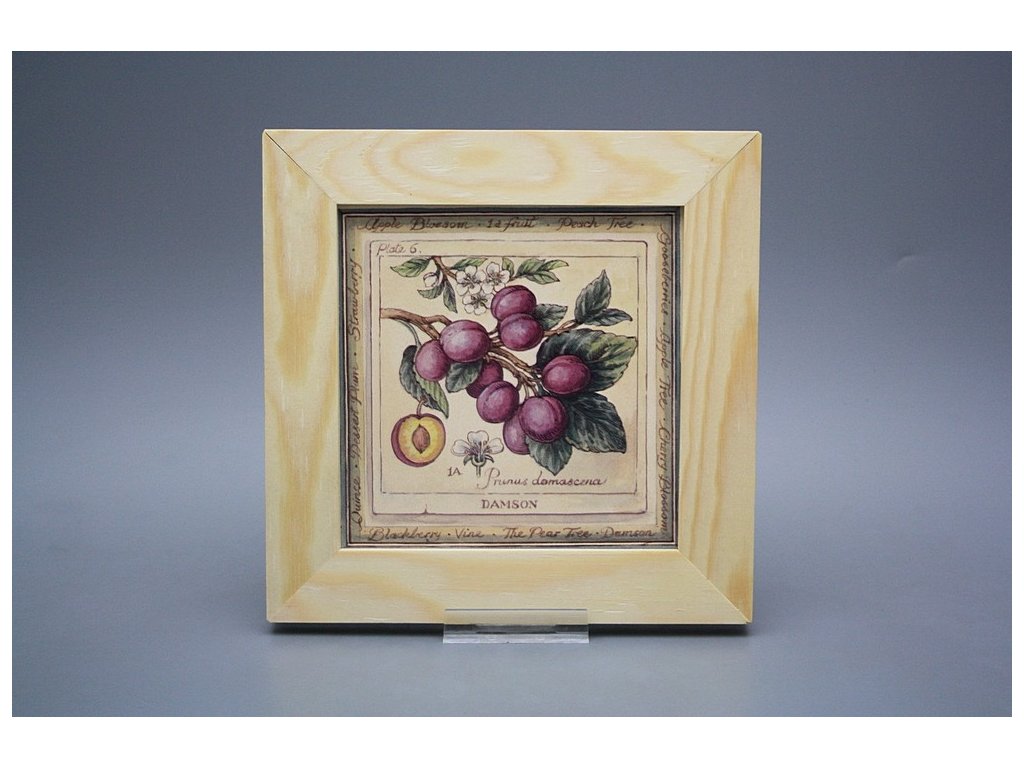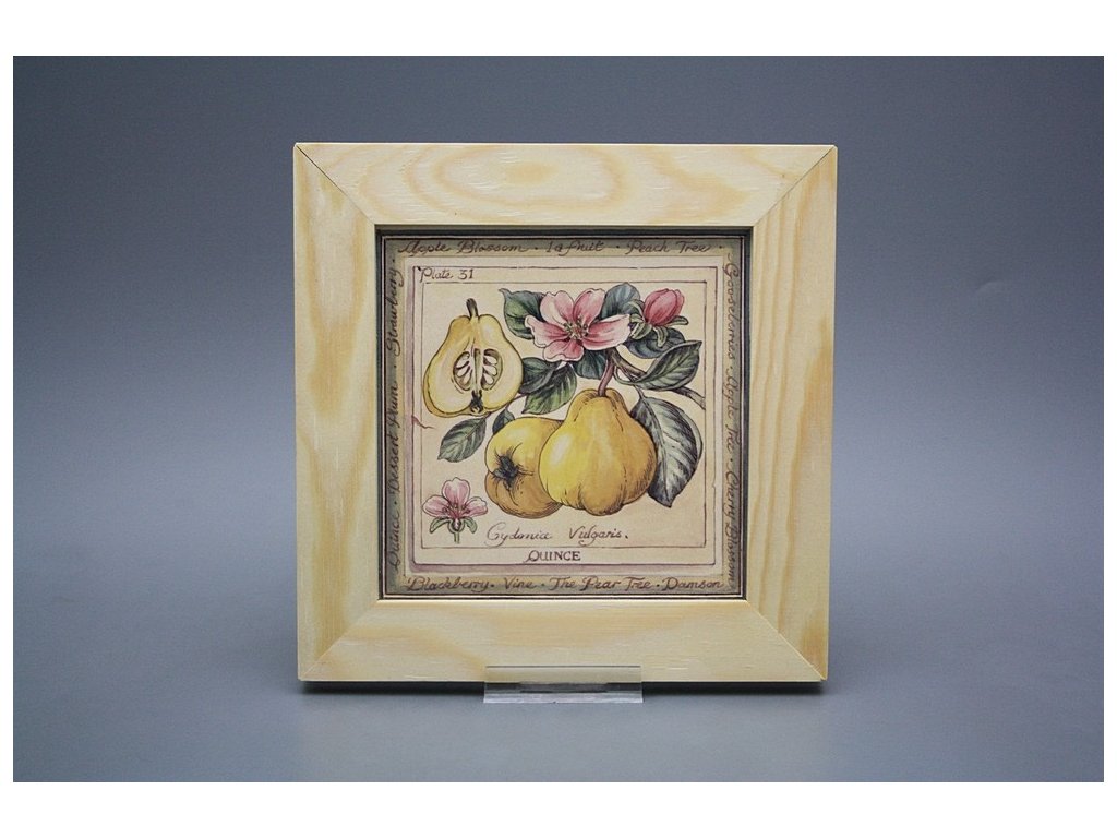 Keramisches Bild zum Aufhängen mit Holzrahmen, Temperatur beim Ausbrennen des Motivs in Höhe von 820°C, abriebfestes, waschbares Dekor.