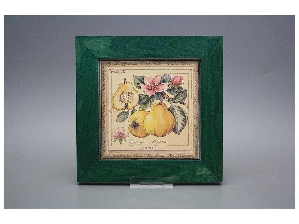 Keramisches Bild zum Aufhängen mit Holzrahmen, Temperatur beim Ausbrennen des Motivs in Höhe von 820°C, abriebfestes, waschbares Dekor.