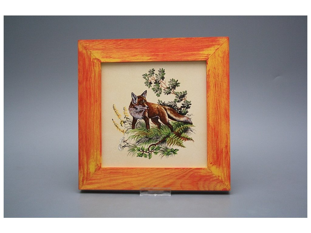 Keramisches Bild zum Aufhängen mit Holzrahmen, Temperatur beim Ausbrennen des Motivs in Höhe von 820°C, abriebfestes, waschbares Dekor.