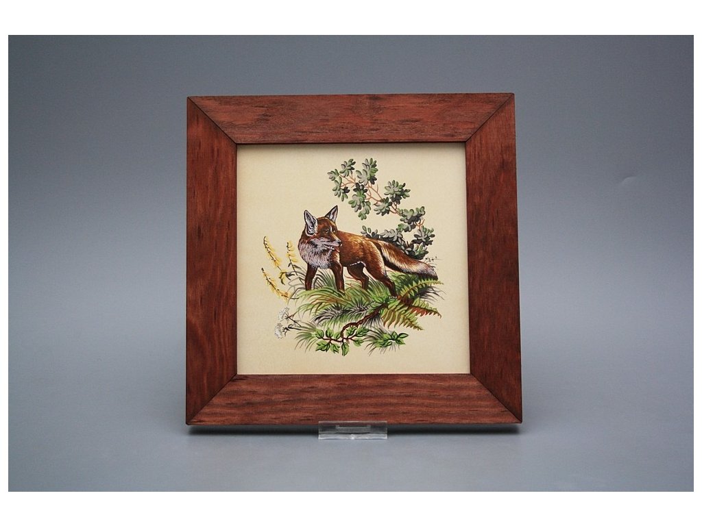 Keramisches Bild zum Aufhängen mit Holzrahmen, Temperatur beim Ausbrennen des Motivs in Höhe von 820°C, abriebfestes, waschbares Dekor.