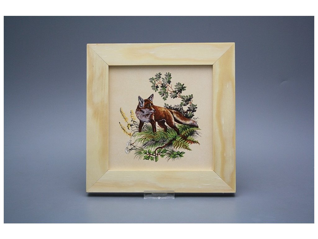 Keramisches Bild zum Aufhängen mit Holzrahmen, Temperatur beim Ausbrennen des Motivs in Höhe von 820°C, abriebfestes, waschbares Dekor.