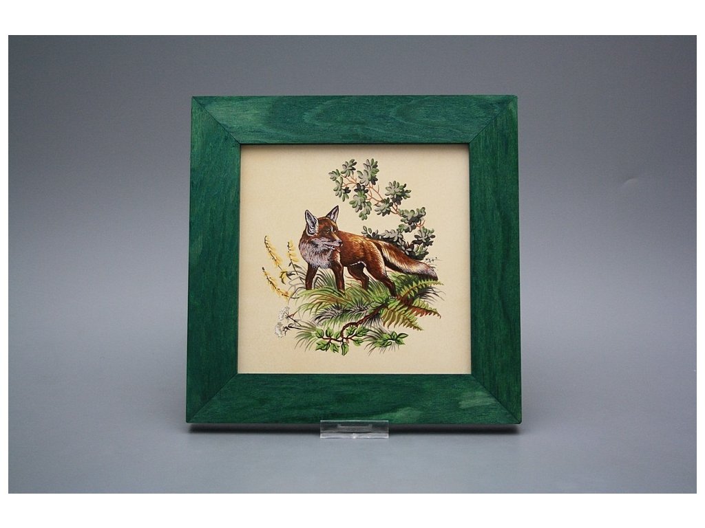Keramisches Bild zum Aufhängen mit Holzrahmen, Temperatur beim Ausbrennen des Motivs in Höhe von 820°C, abriebfestes, waschbares Dekor.