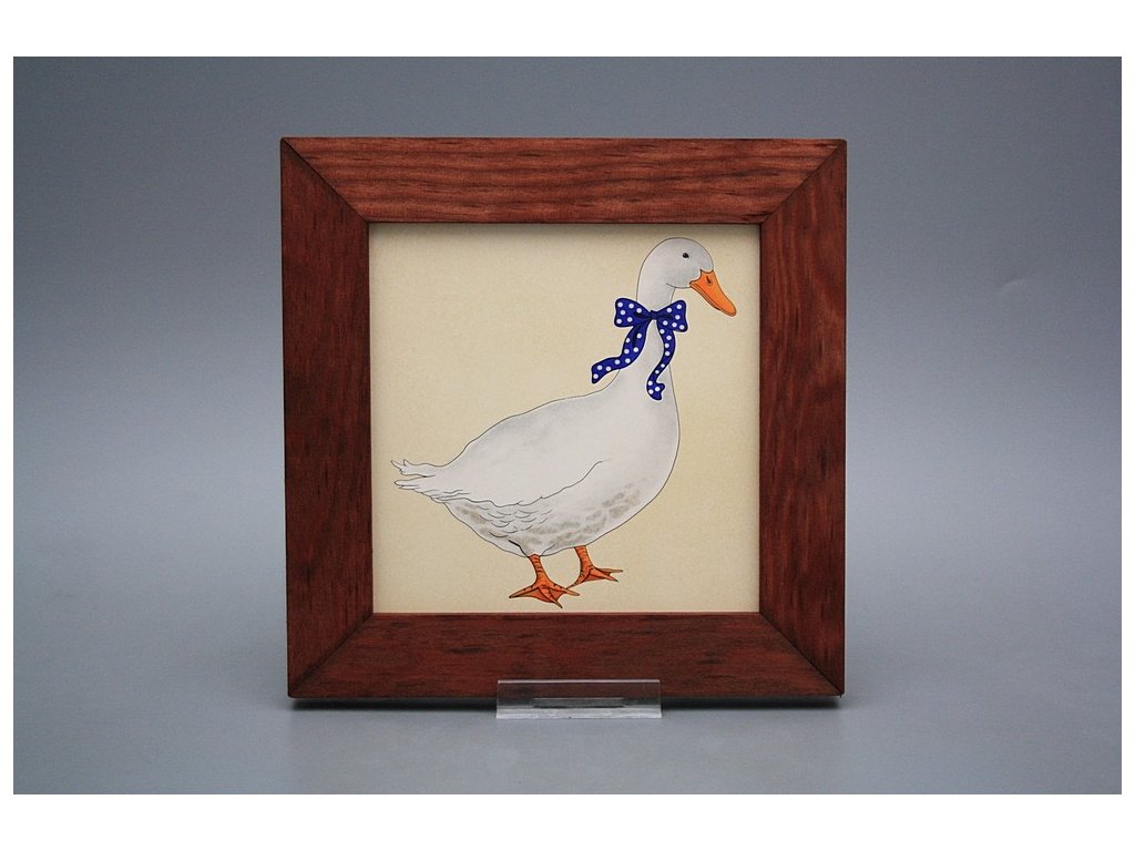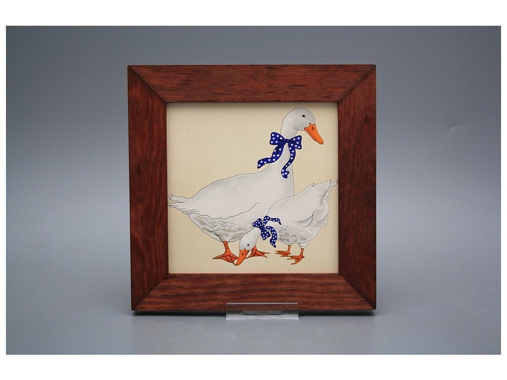 Keramisches Bild zum Aufhängen mit Holzrahmen, Temperatur beim Ausbrennen des Motivs in Höhe von 820°C, abriebfestes, waschbares Dekor.