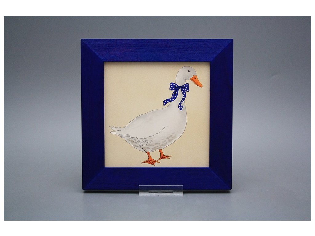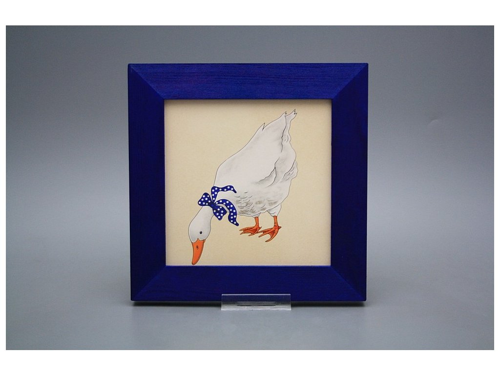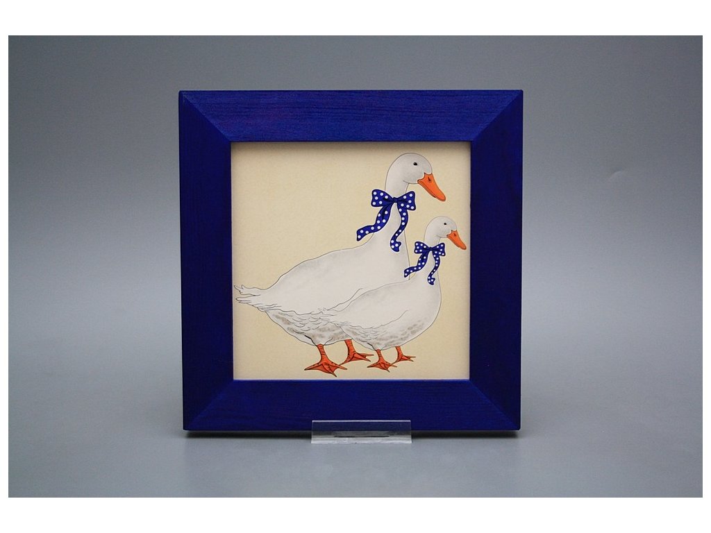Keramisches Bild zum Aufhängen mit Holzrahmen, Temperatur beim Ausbrennen des Motivs in Höhe von 820°C, abriebfestes, waschbares Dekor.