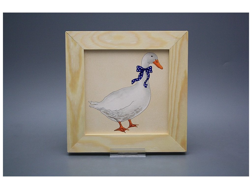 Keramisches Bild zum Aufhängen mit Holzrahmen, Temperatur beim Ausbrennen des Motivs in Höhe von 820°C, abriebfestes, waschbares Dekor.