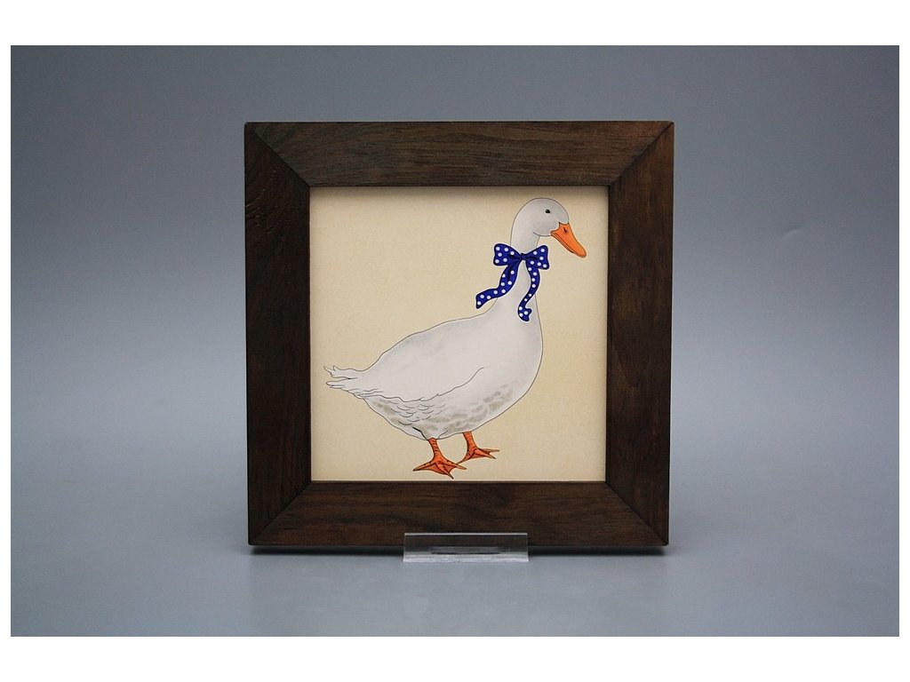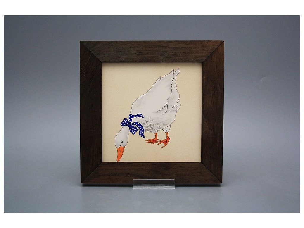 Keramisches Bild zum Aufhängen mit Holzrahmen, Temperatur beim Ausbrennen des Motivs in Höhe von 820°C, abriebfestes, waschbares Dekor.