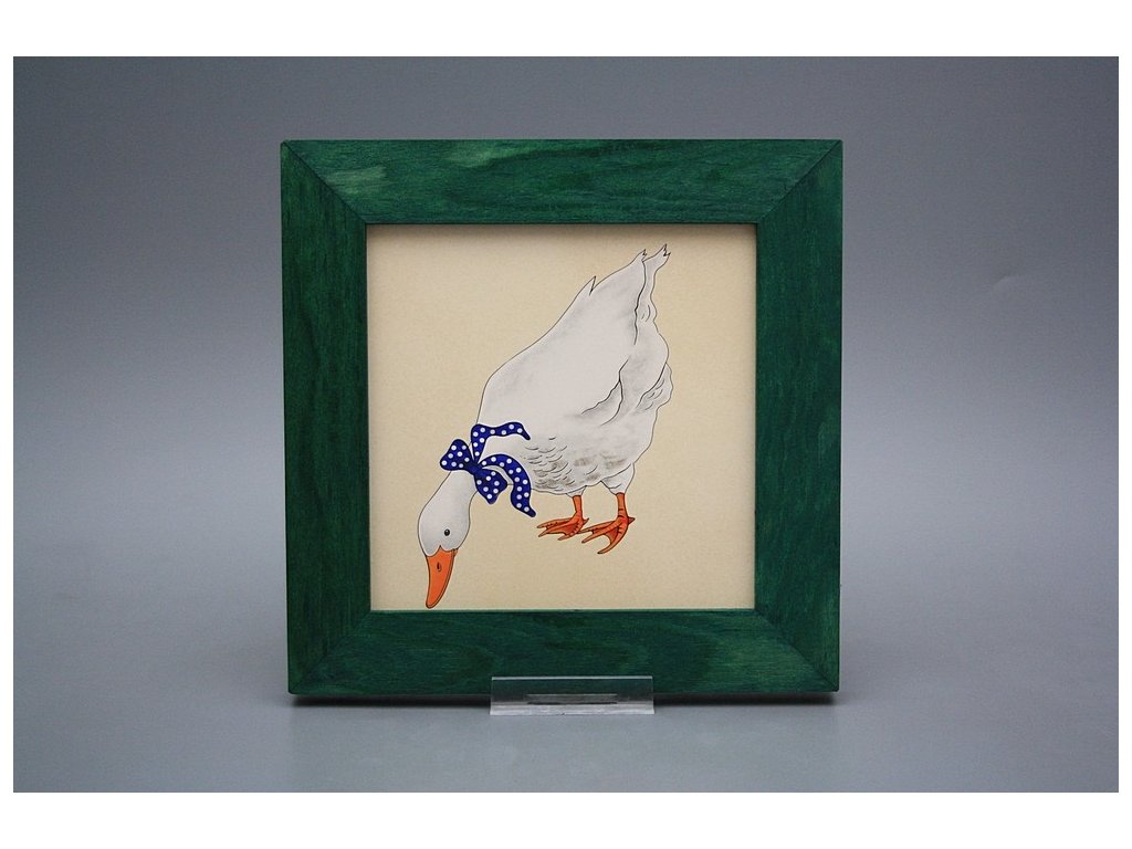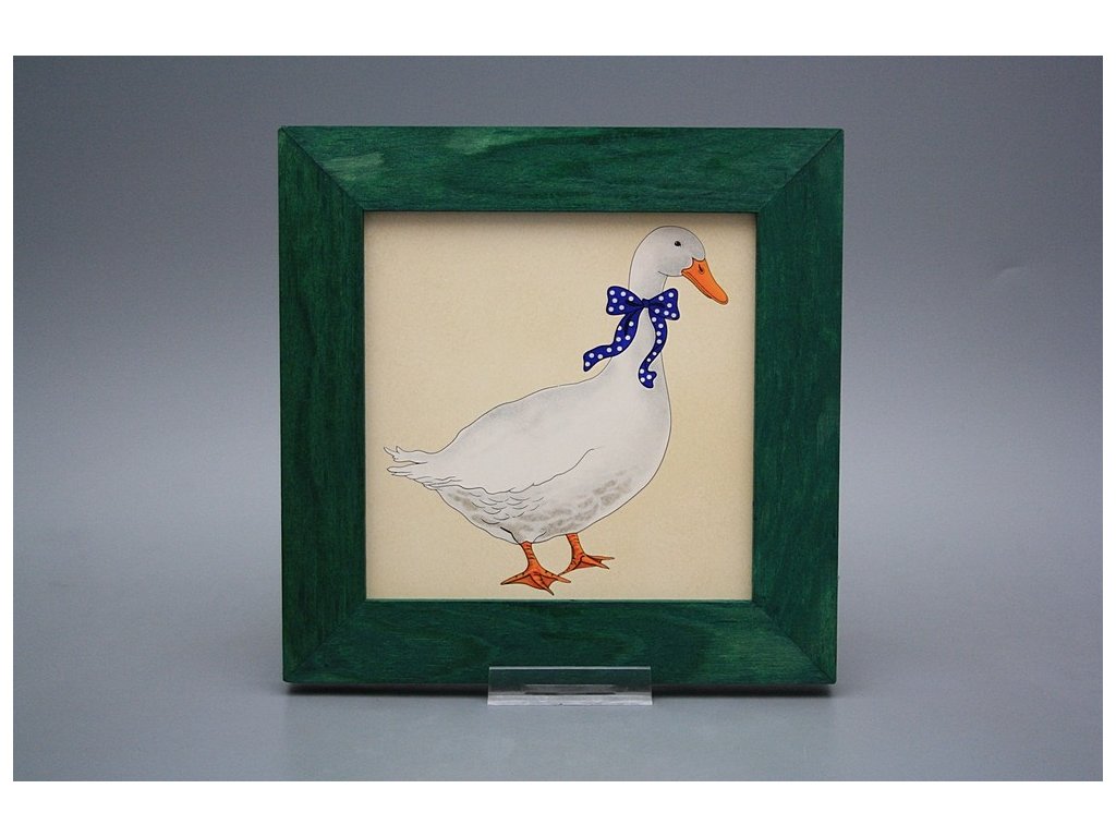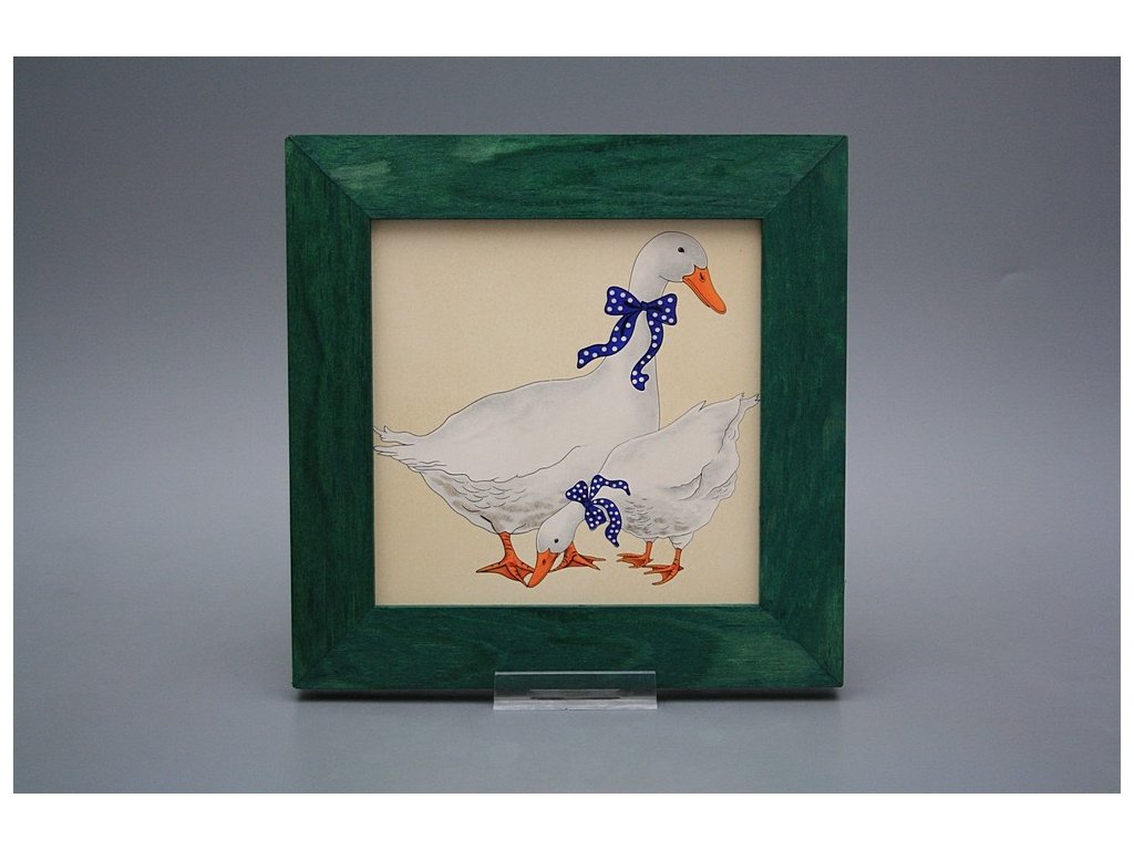 Keramisches Bild zum Aufhängen mit Holzrahmen, Temperatur beim Ausbrennen des Motivs in Höhe von 820°C, abriebfestes, waschbares Dekor.