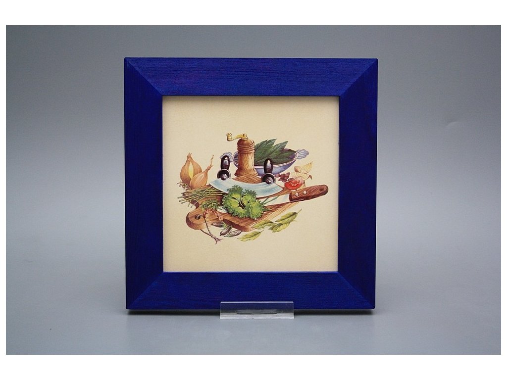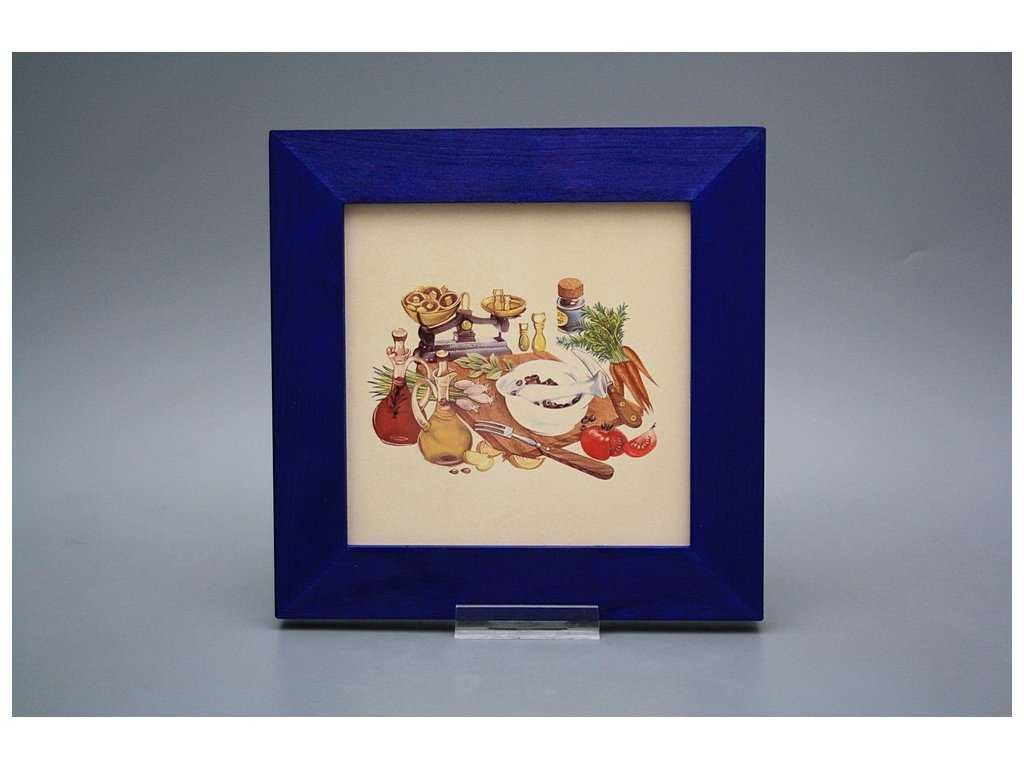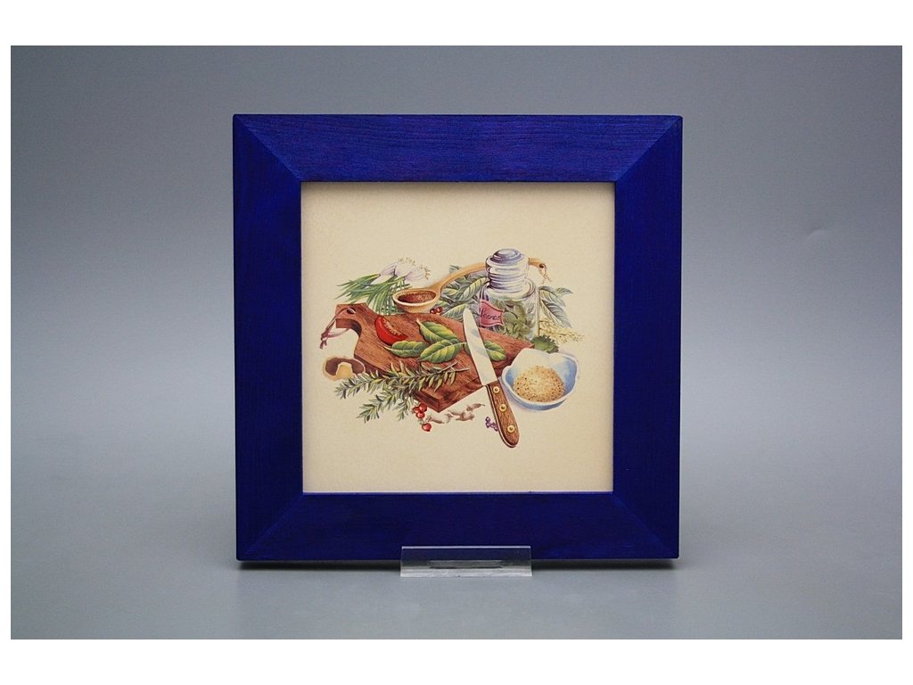 Keramisches Bild zum Aufhängen mit Holzrahmen, Temperatur beim Ausbrennen des Motivs in Höhe von 820°C, abriebfestes, waschbares Dekor.