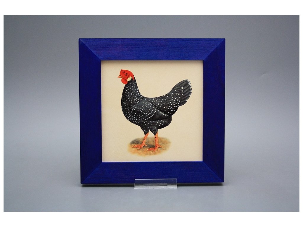 Keramisches Bild zum Aufhängen mit Holzrahmen, Temperatur beim Ausbrennen des Motivs in Höhe von 820°C, abriebfestes, waschbares Dekor.