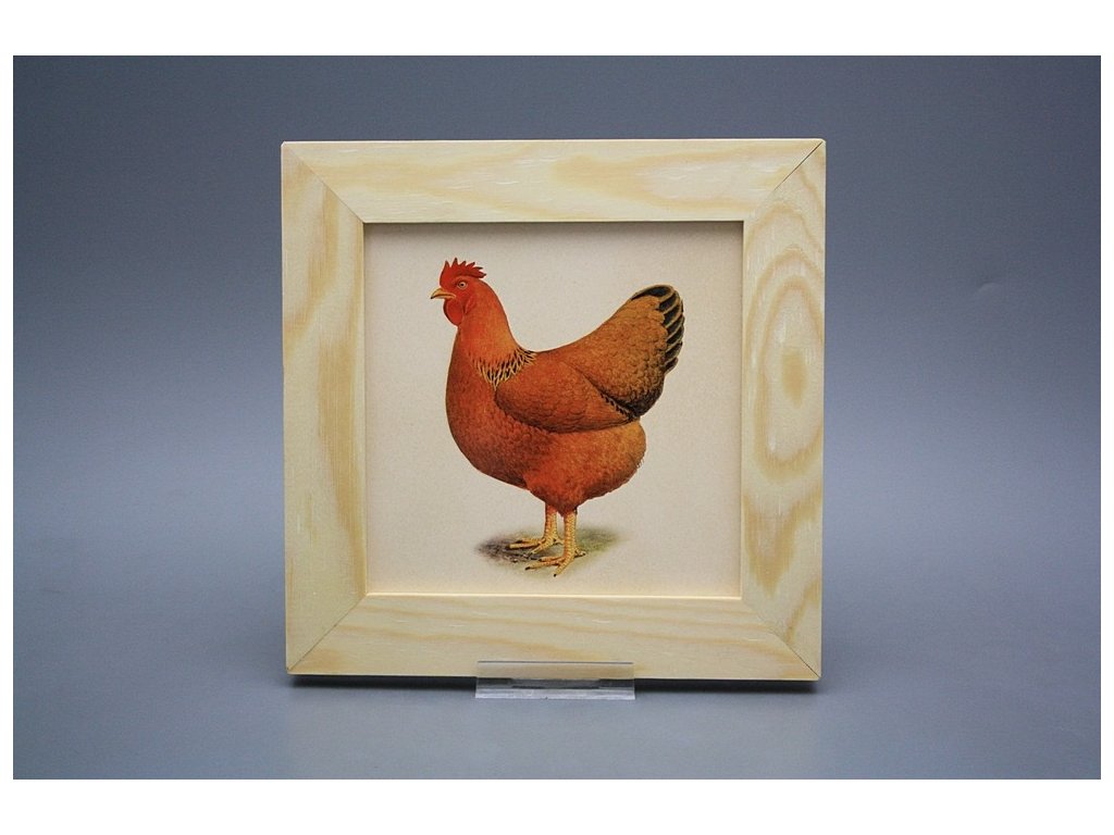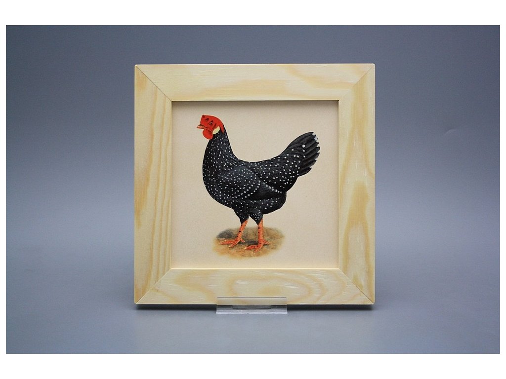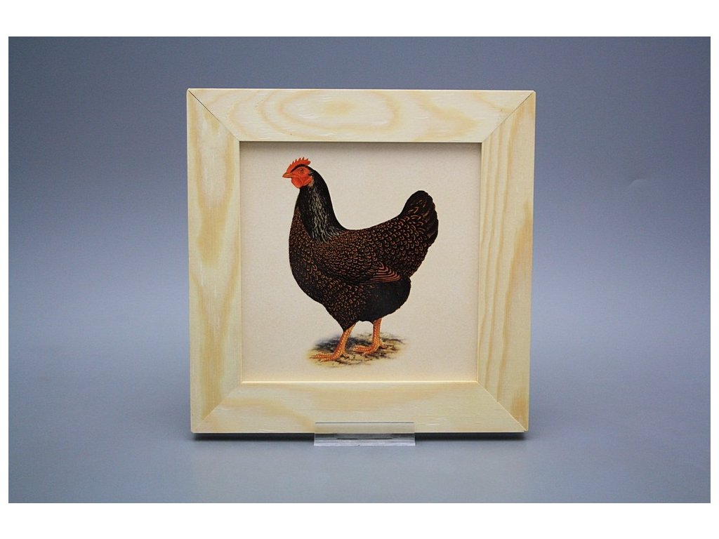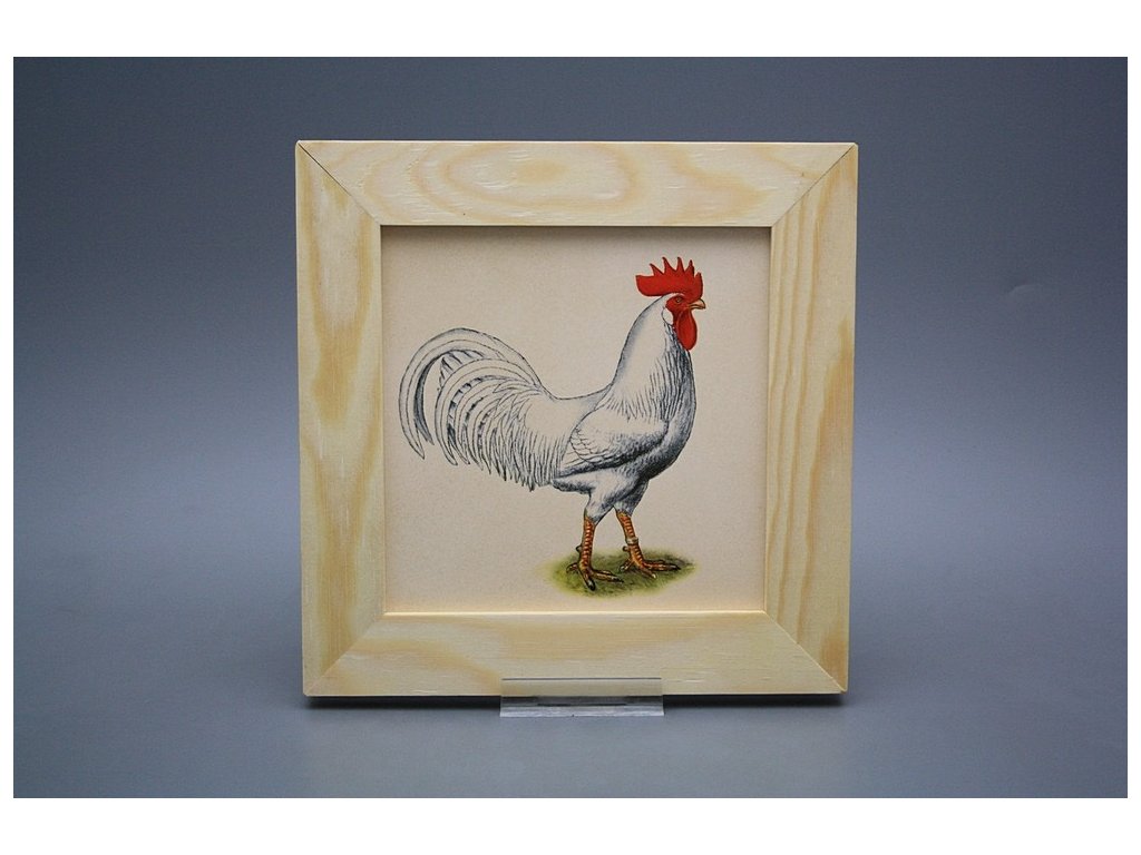 Keramisches Bild zum Aufhängen mit Holzrahmen, Temperatur beim Ausbrennen des Motivs in Höhe von 820°C, abriebfestes, waschbares Dekor.