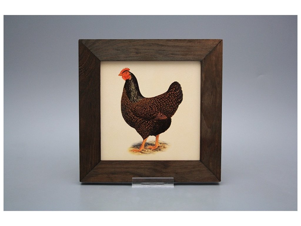 Keramisches Bild zum Aufhängen mit Holzrahmen, Temperatur beim Ausbrennen des Motivs in Höhe von 820°C, abriebfestes, waschbares Dekor.