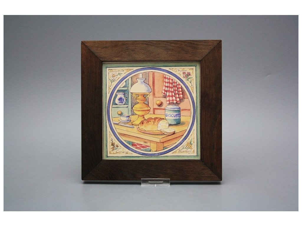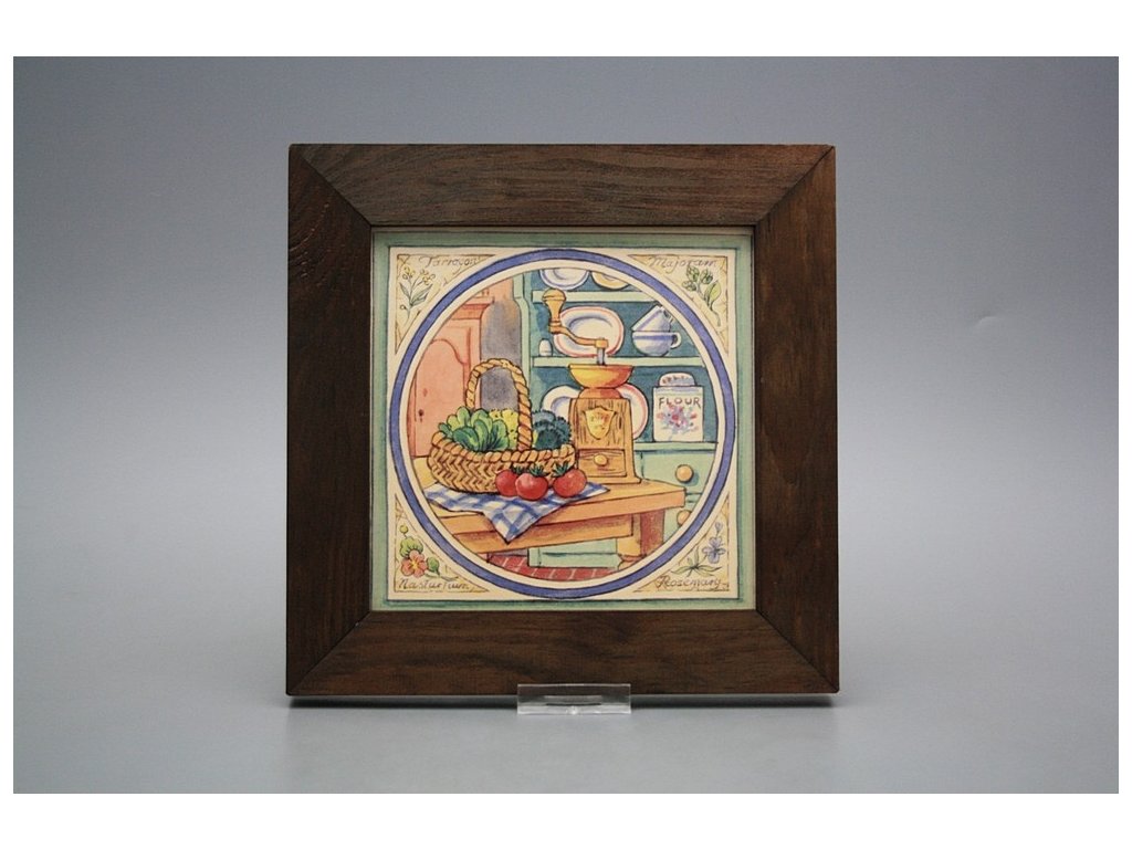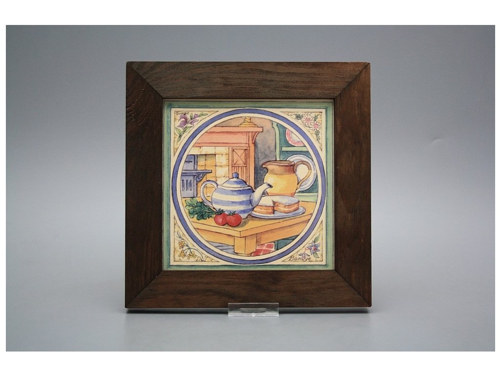 Keramisches Bild zum Aufhängen mit Holzrahmen, Temperatur beim Ausbrennen des Motivs in Höhe von 820°C, abriebfestes, waschbares Dekor.