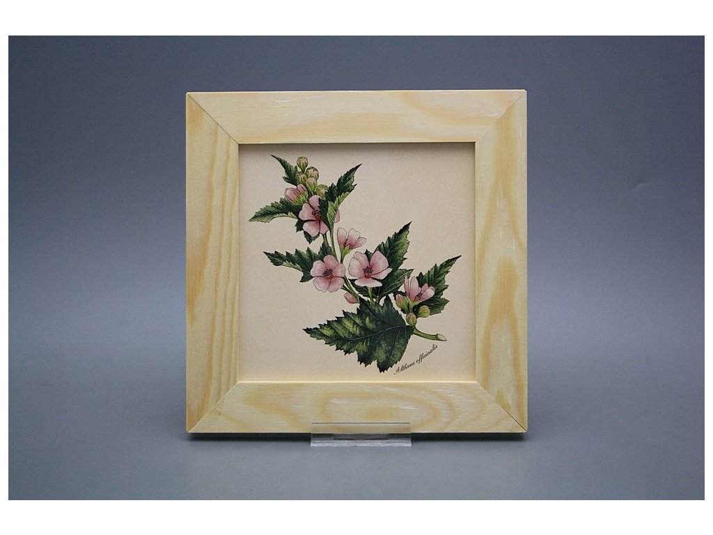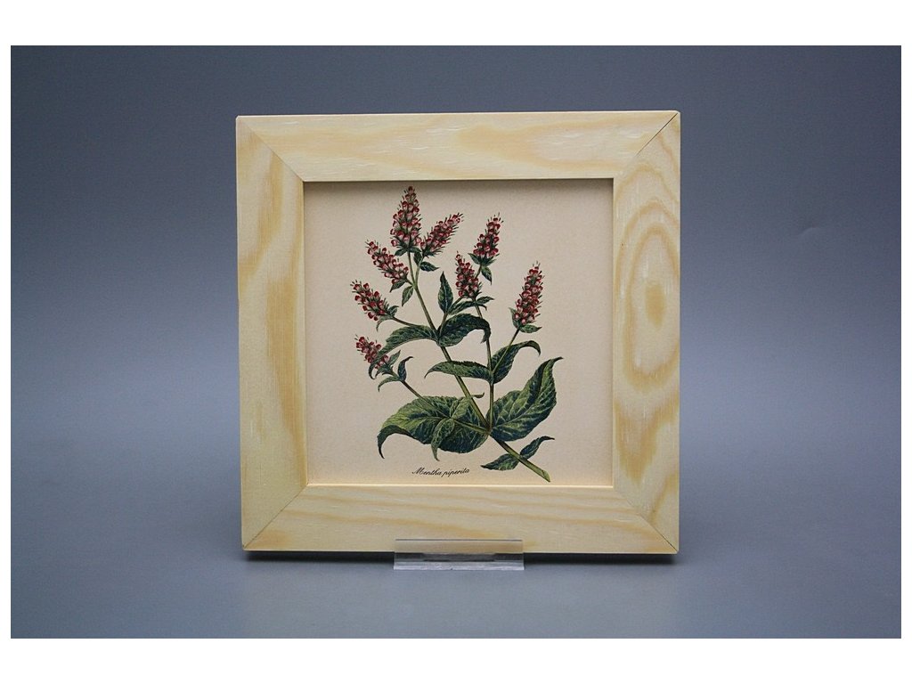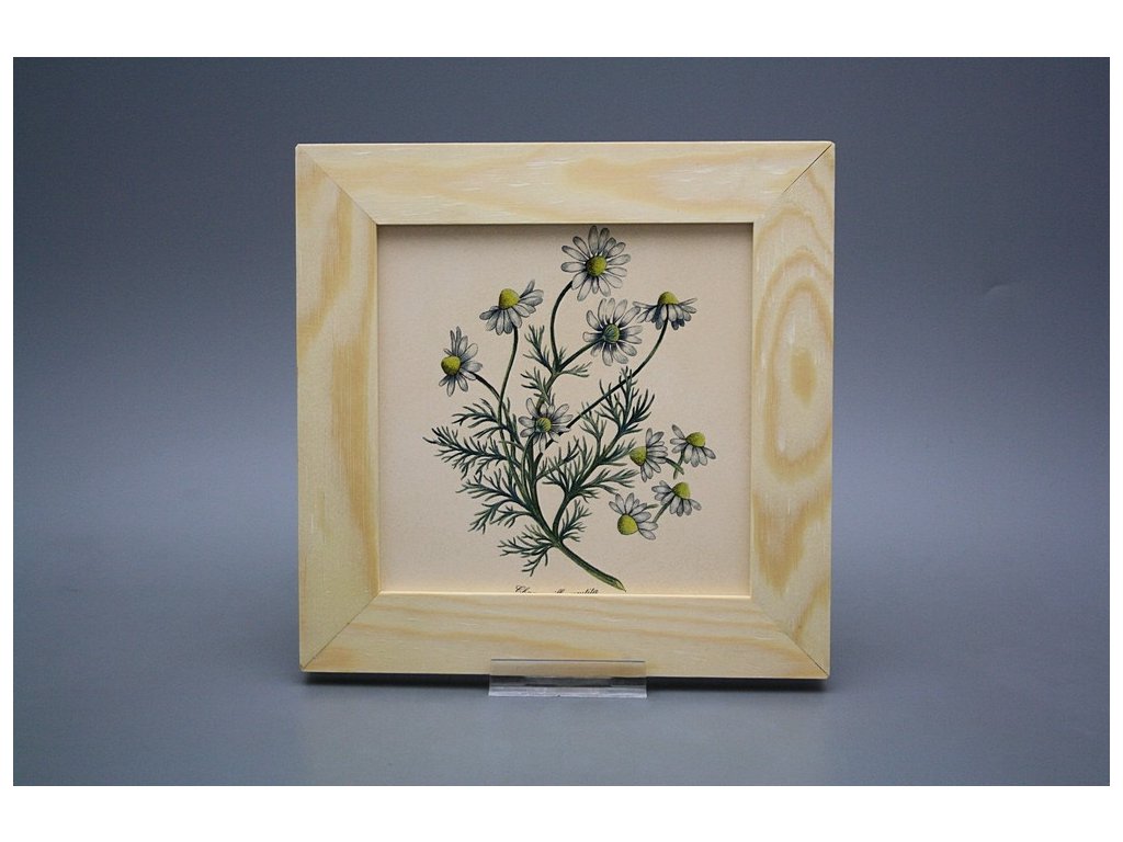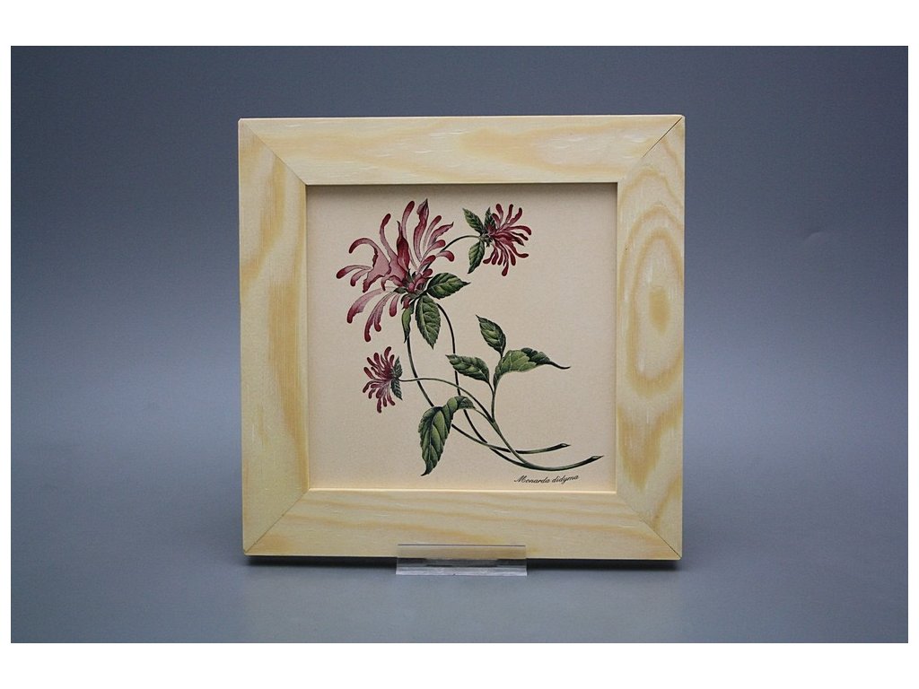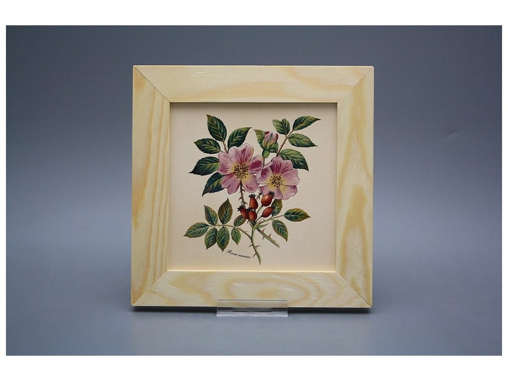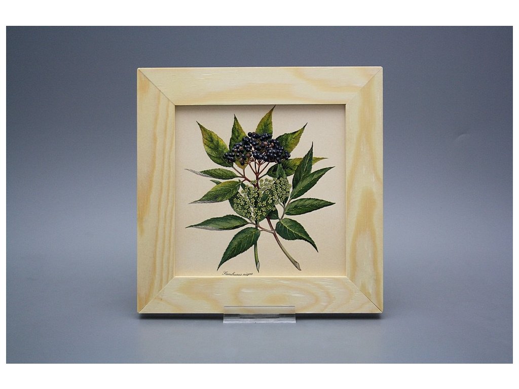 Keramisches Bild zum Aufhängen mit Holzrahmen, Temperatur beim Ausbrennen des Motivs in Höhe von 820°C, abriebfestes, waschbares Dekor.