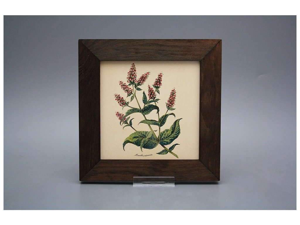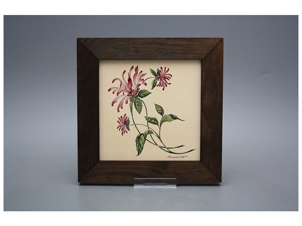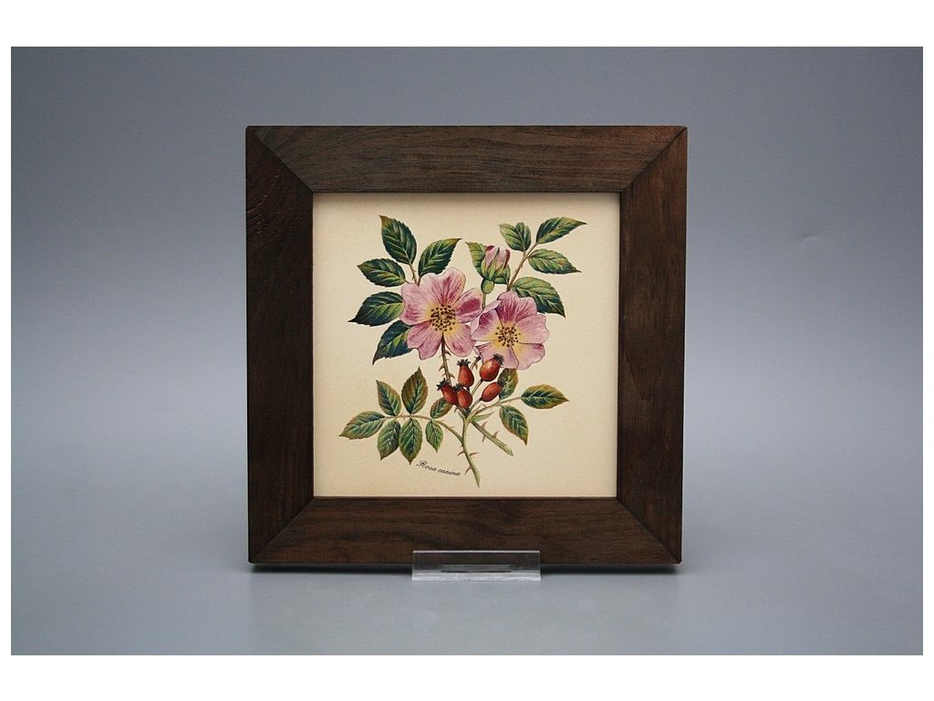Keramisches Bild zum Aufhängen mit Holzrahmen, Temperatur beim Ausbrennen des Motivs in Höhe von 820°C, abriebfestes, waschbares Dekor.