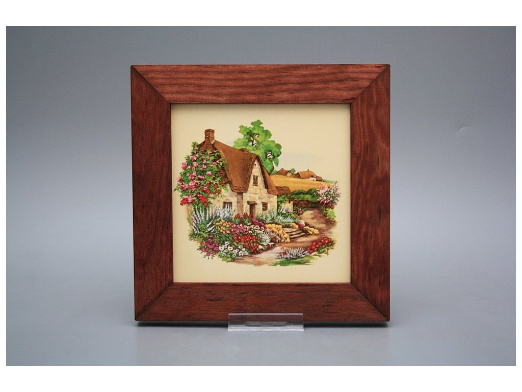 Keramisches Bild zum Aufhängen mit Holzrahmen, Temperatur beim Ausbrennen des Motivs in Höhe von 820°C, abriebfestes, waschbares Dekor.
