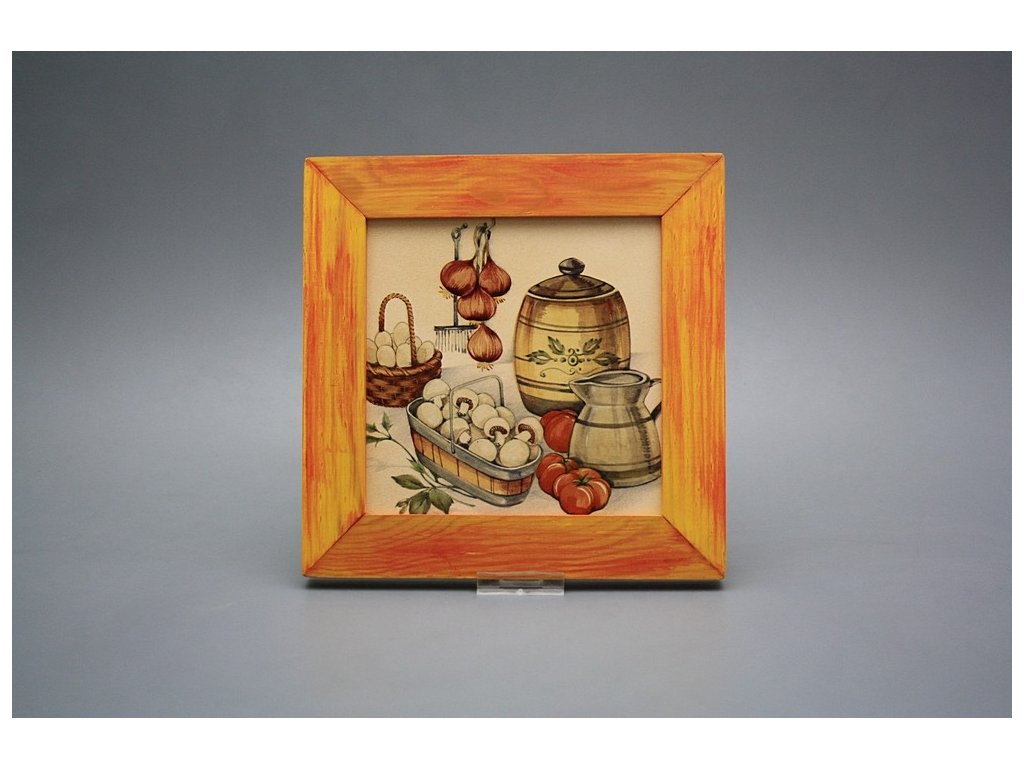 Keramisches Bild zum Aufhängen mit Holzrahmen, Temperatur beim Ausbrennen des Motivs in Höhe von 820°C, abriebfestes, waschbares Dekor.