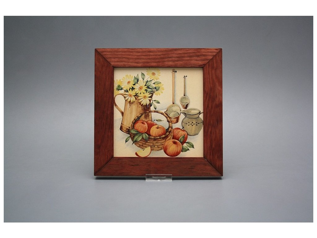 Keramisches Bild zum Aufhängen mit Holzrahmen, Temperatur beim Ausbrennen des Motivs in Höhe von 820°C, abriebfestes, waschbares Dekor.