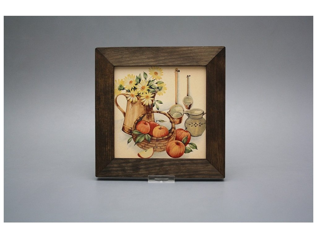 Keramisches Bild zum Aufhängen mit Holzrahmen, Temperatur beim Ausbrennen des Motivs in Höhe von 820°C, abriebfestes, waschbares Dekor.