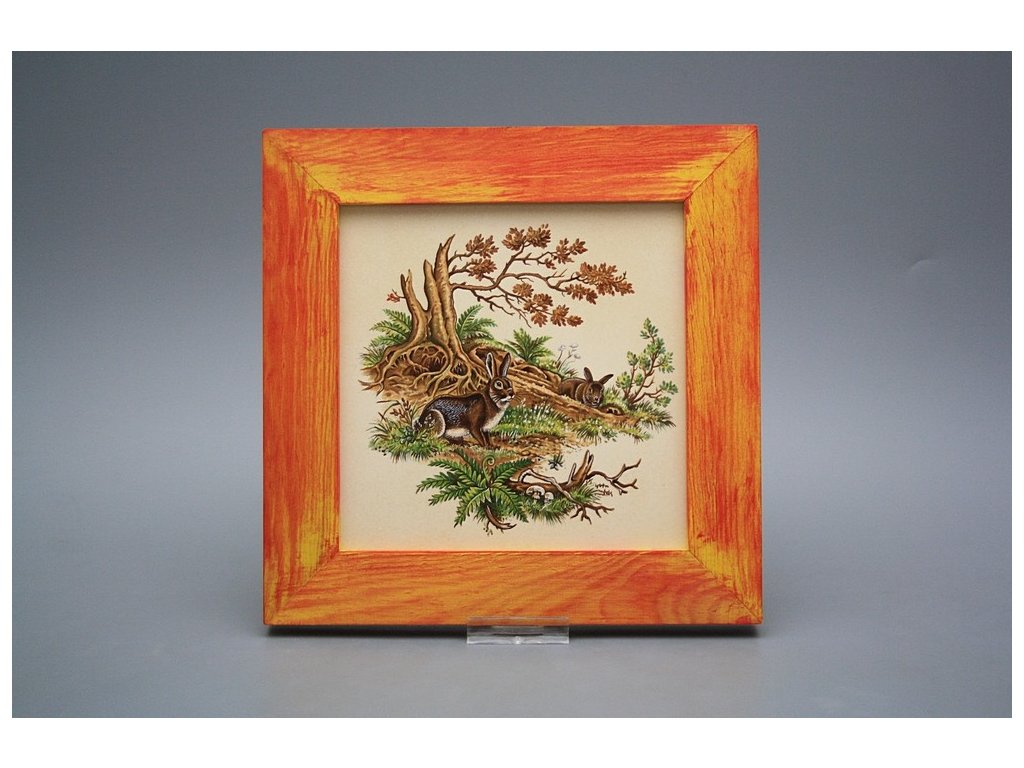 Keramisches Bild zum Aufhängen mit Holzrahmen, Temperatur beim Ausbrennen des Motivs in Höhe von 820°C, abriebfestes, waschbares Dekor.