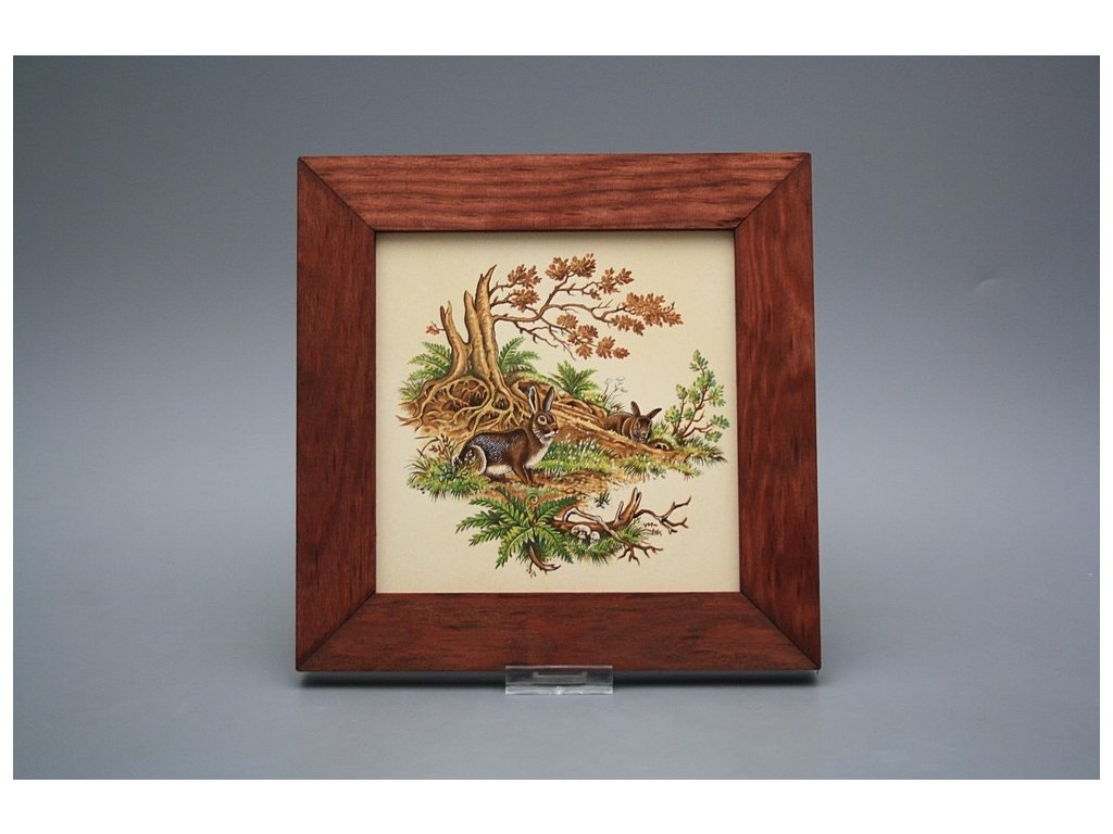 Keramisches Bild zum Aufhängen mit Holzrahmen, Temperatur beim Ausbrennen des Motivs in Höhe von 820°C, abriebfestes, waschbares Dekor.