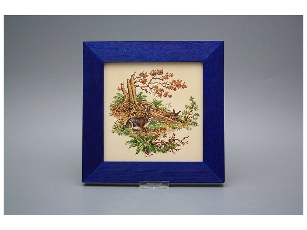 Keramisches Bild zum Aufhängen mit Holzrahmen, Temperatur beim Ausbrennen des Motivs in Höhe von 820°C, abriebfestes, waschbares Dekor.