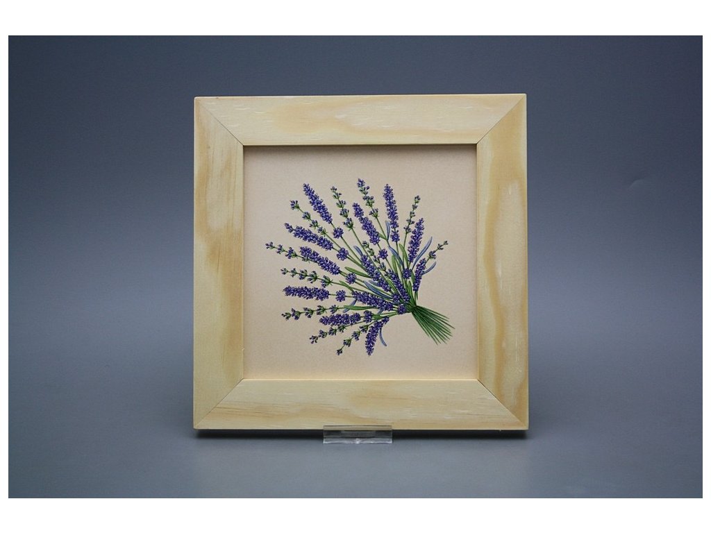 Keramisches Bild zum Aufhängen mit Holzrahmen, Temperatur beim Ausbrennen des Motivs in Höhe von 820°C, abriebfestes, waschbares Dekor.