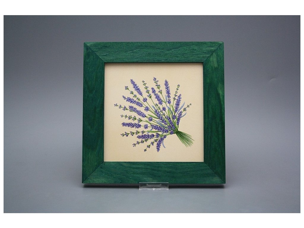 Keramisches Bild zum Aufhängen mit Holzrahmen, Temperatur beim Ausbrennen des Motivs in Höhe von 820°C, abriebfestes, waschbares Dekor.