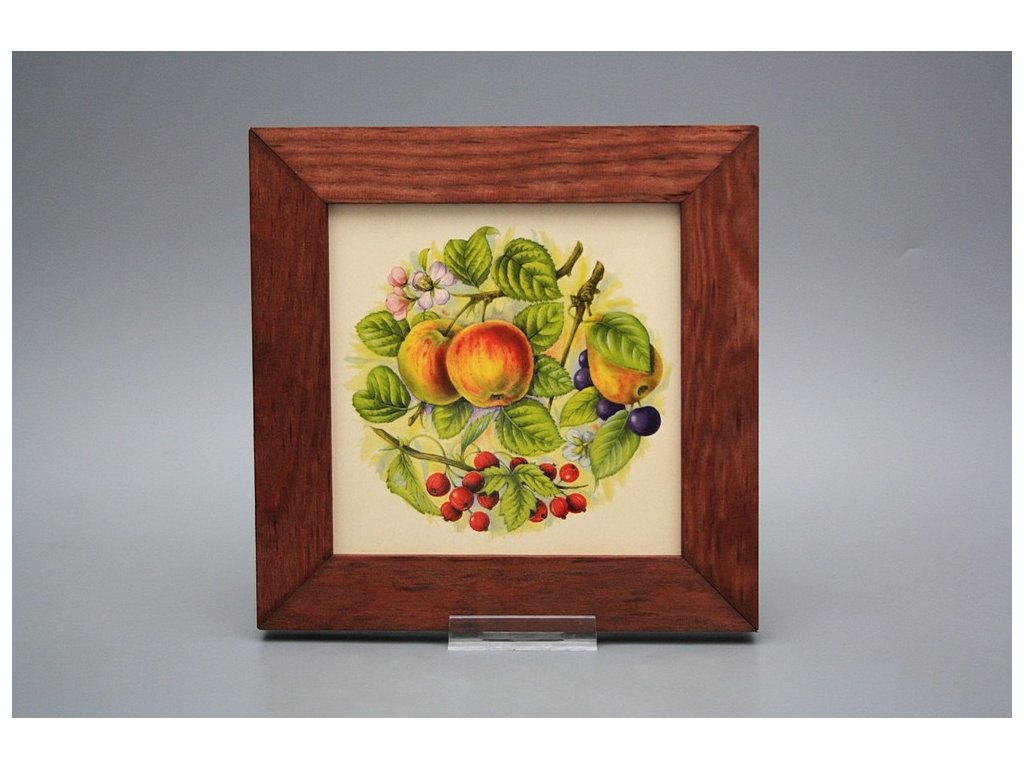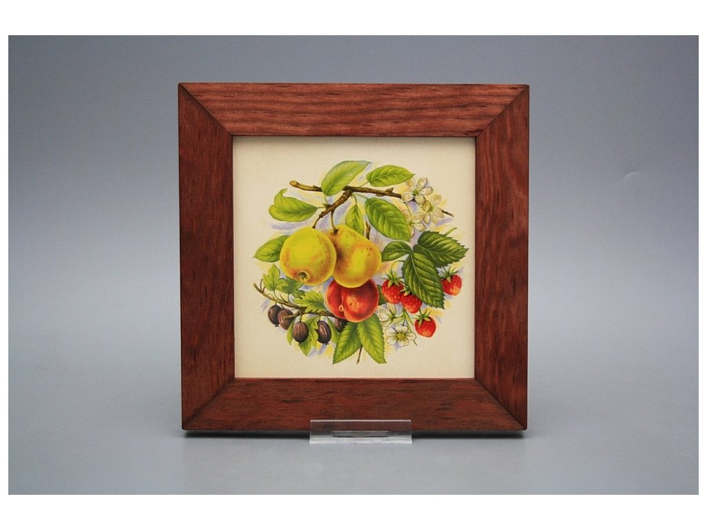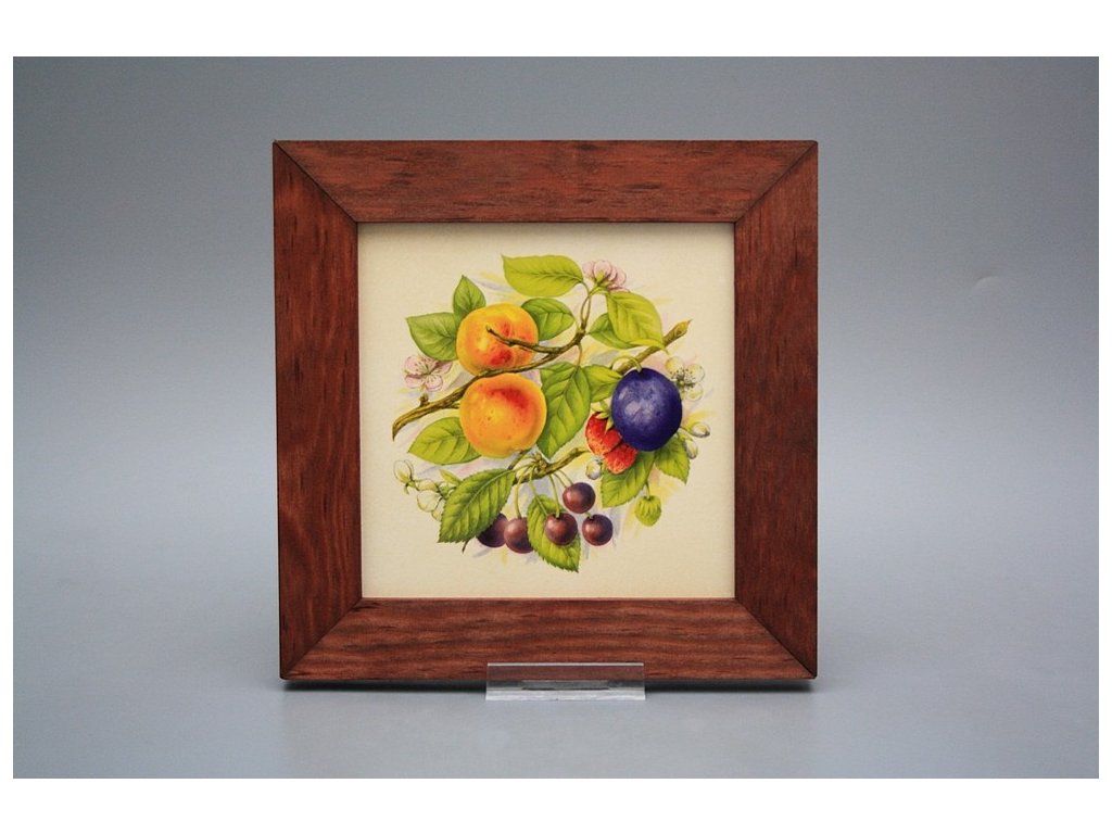 Keramisches Bild zum Aufhängen mit Holzrahmen, Temperatur beim Ausbrennen des Motivs in Höhe von 820°C, abriebfestes, waschbares Dekor.