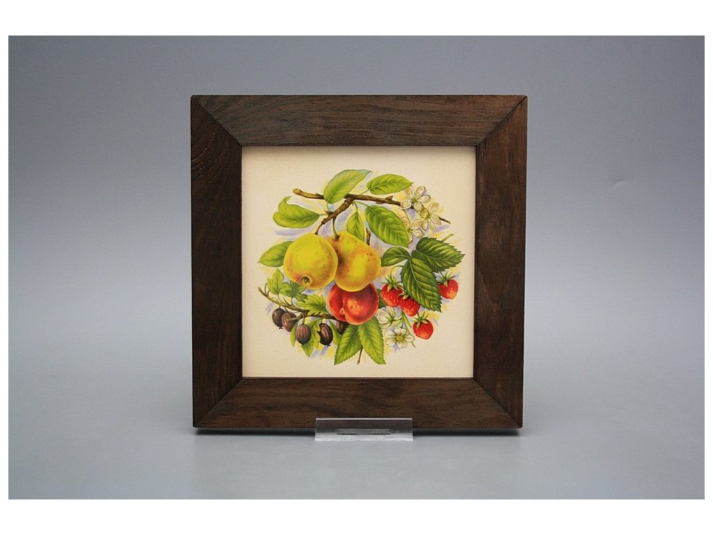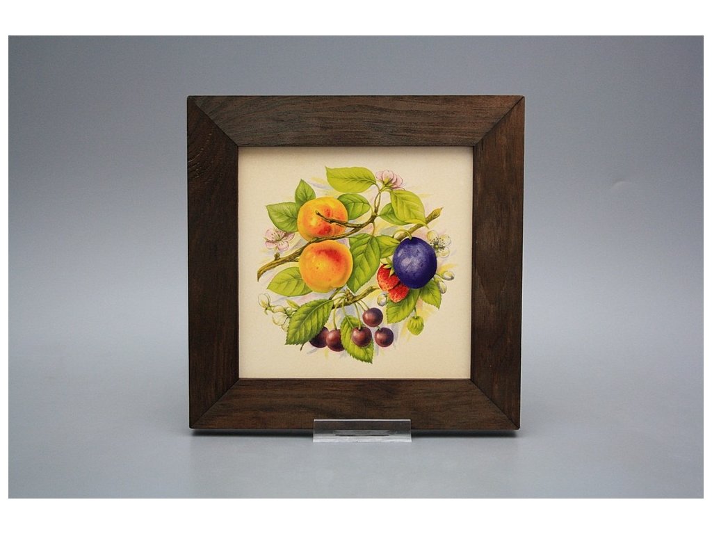Keramisches Bild zum Aufhängen mit Holzrahmen, Temperatur beim Ausbrennen des Motivs in Höhe von 820°C, abriebfestes, waschbares Dekor.