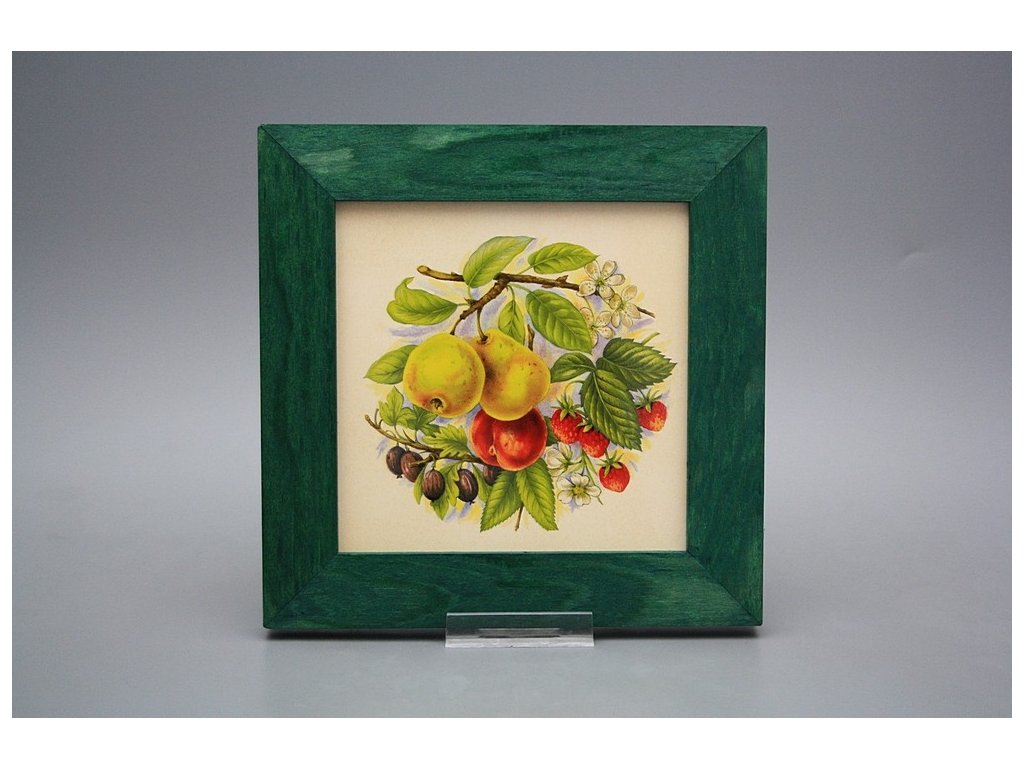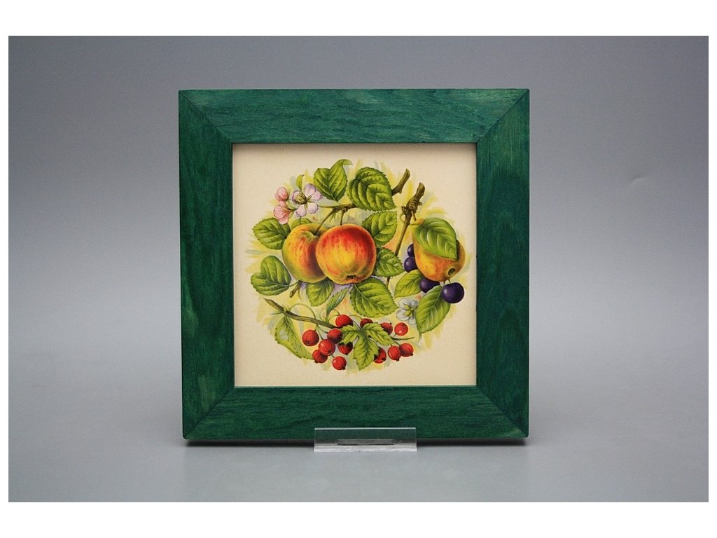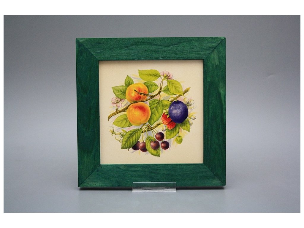 Keramisches Bild zum Aufhängen mit Holzrahmen, Temperatur beim Ausbrennen des Motivs in Höhe von 820°C, abriebfestes, waschbares Dekor.
