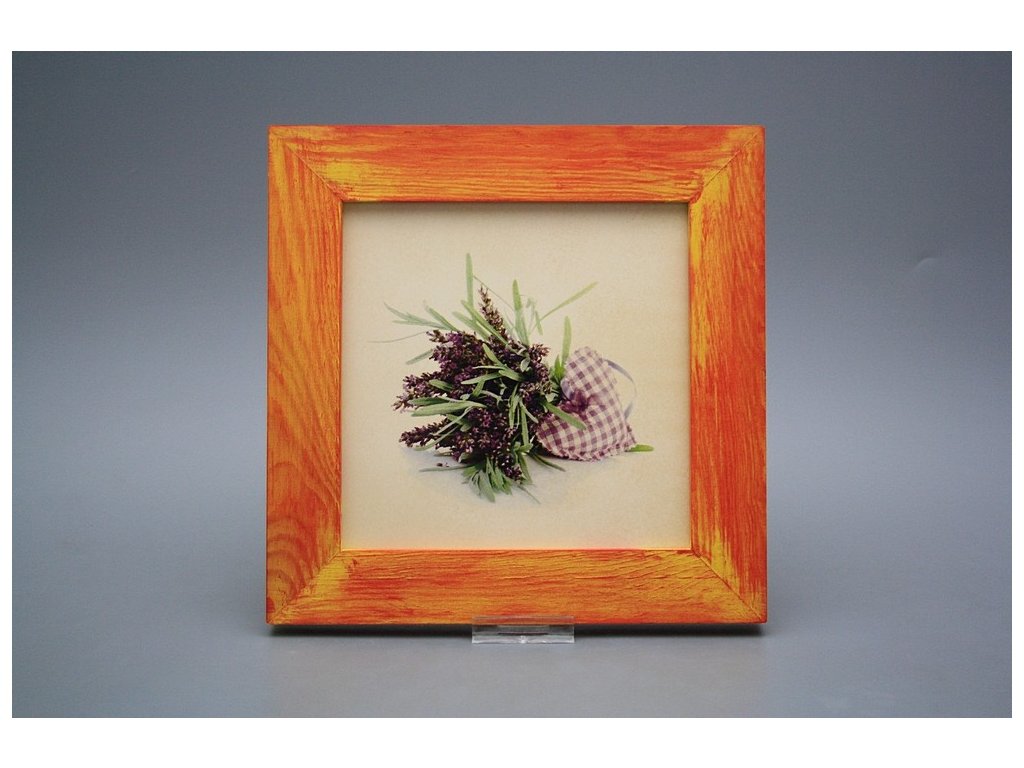 Keramisches Bild zum Aufhängen mit Holzrahmen, Temperatur beim Ausbrennen des Motivs in Höhe von 820°C, abriebfestes, waschbares Dekor.